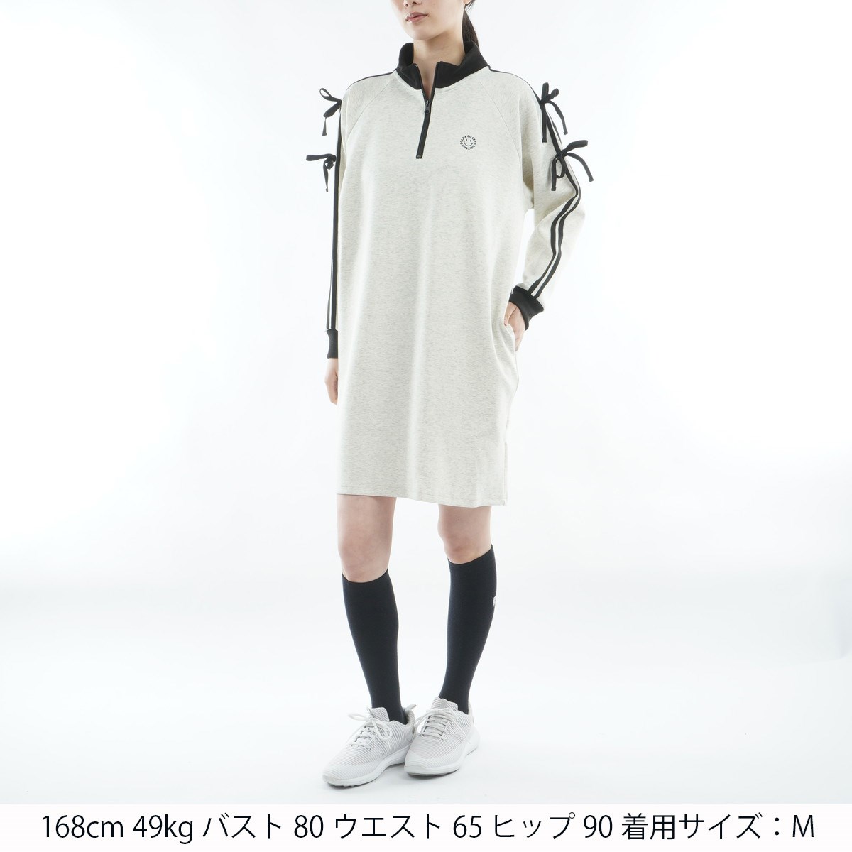 袖のラインとリボンデザインが目を引く、スポーティ&フェミニンなワンピース。