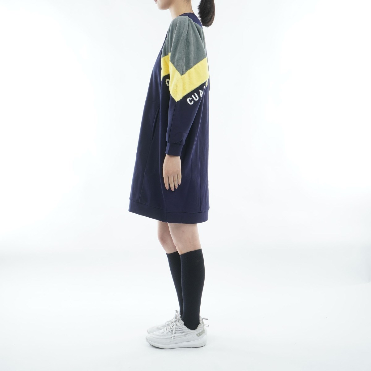 クアルトユナイテッド CUARTO UNITED 裏起毛 ファー切替ワンピース L ネイビー レディス