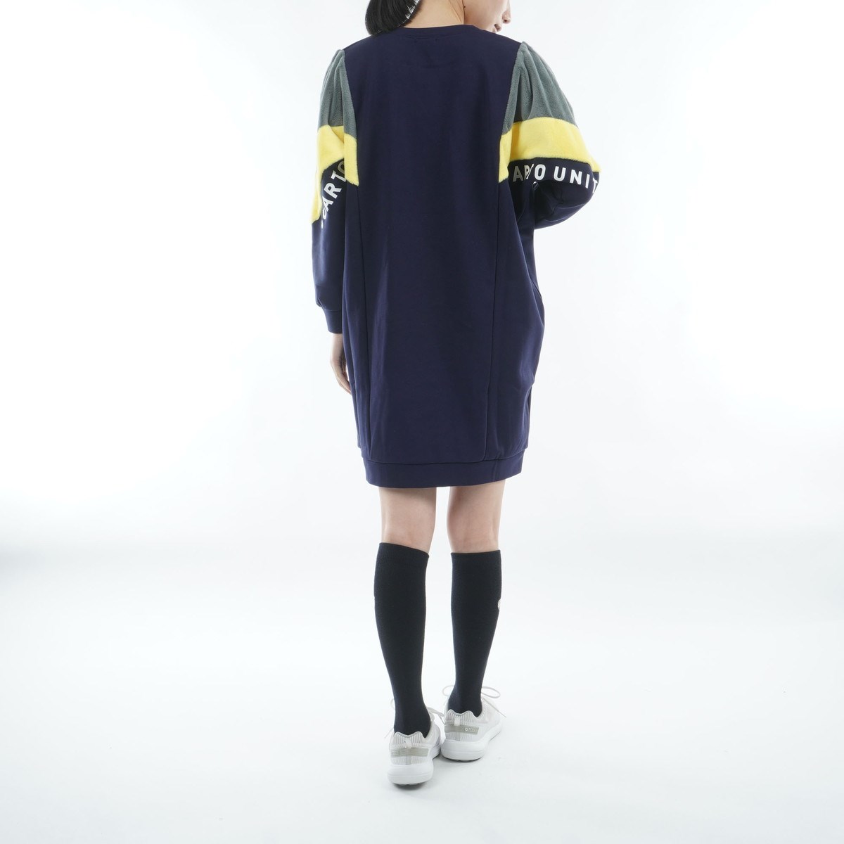 袖を広げたときにロゴが見える遊び心あるデザインのワンピース。