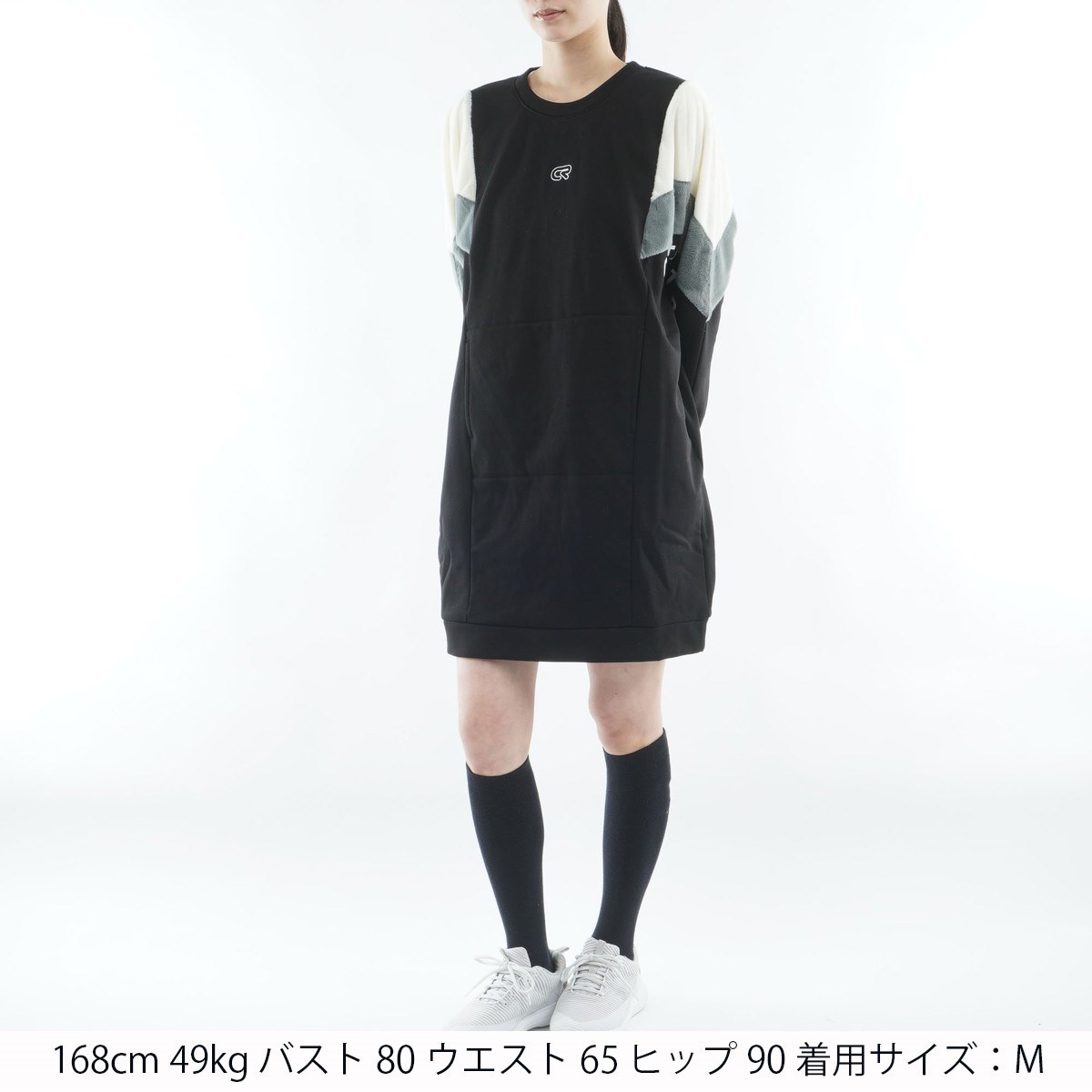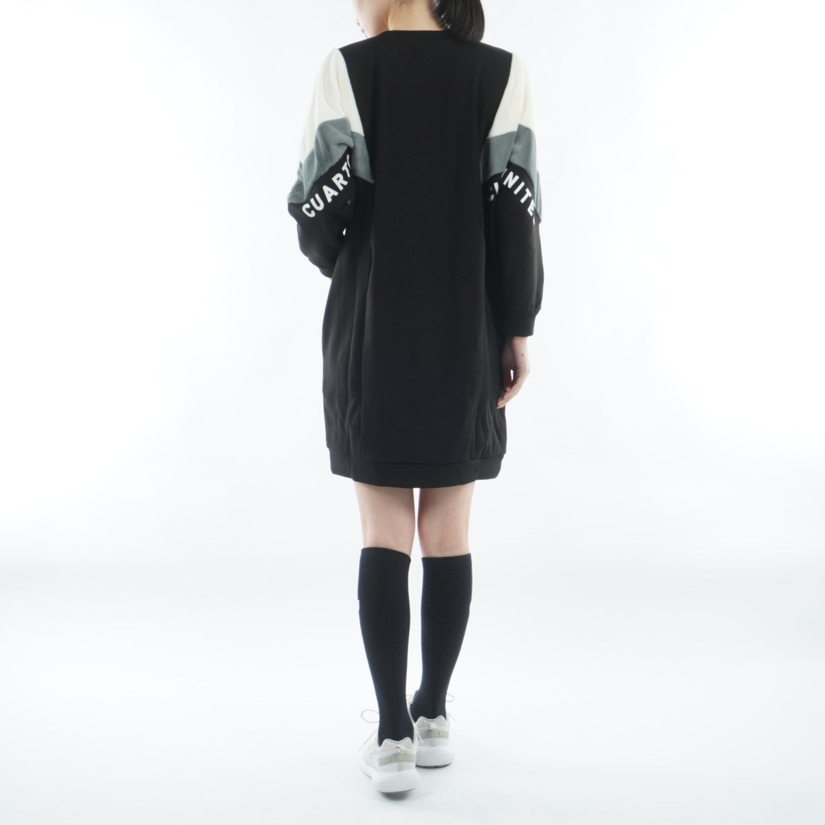 袖を広げたときにロゴが見える遊び心あるデザインのワンピース。