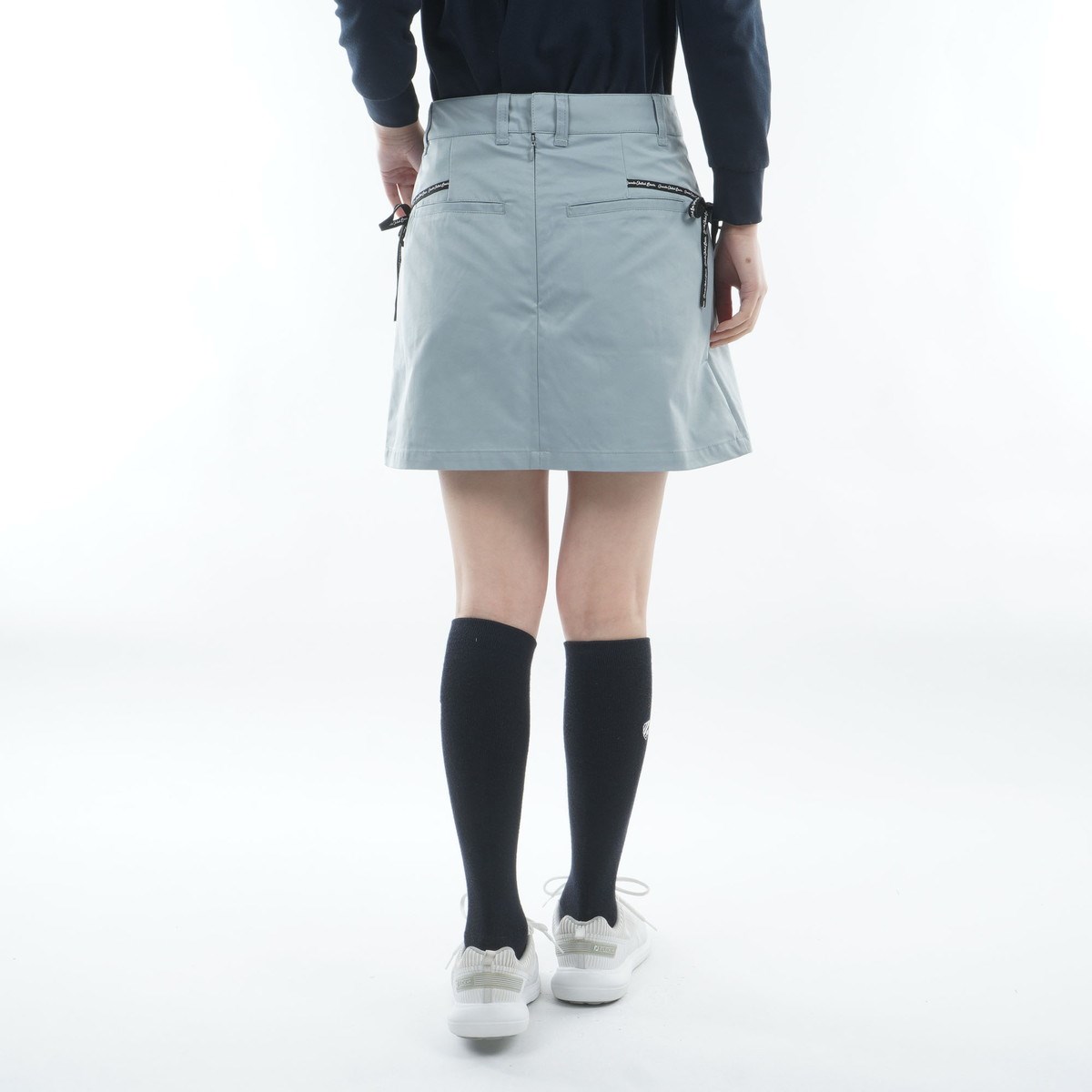 後ろはプリーツなしで腰回りももたつかず、すっきりした印象。【洗濯仕様】