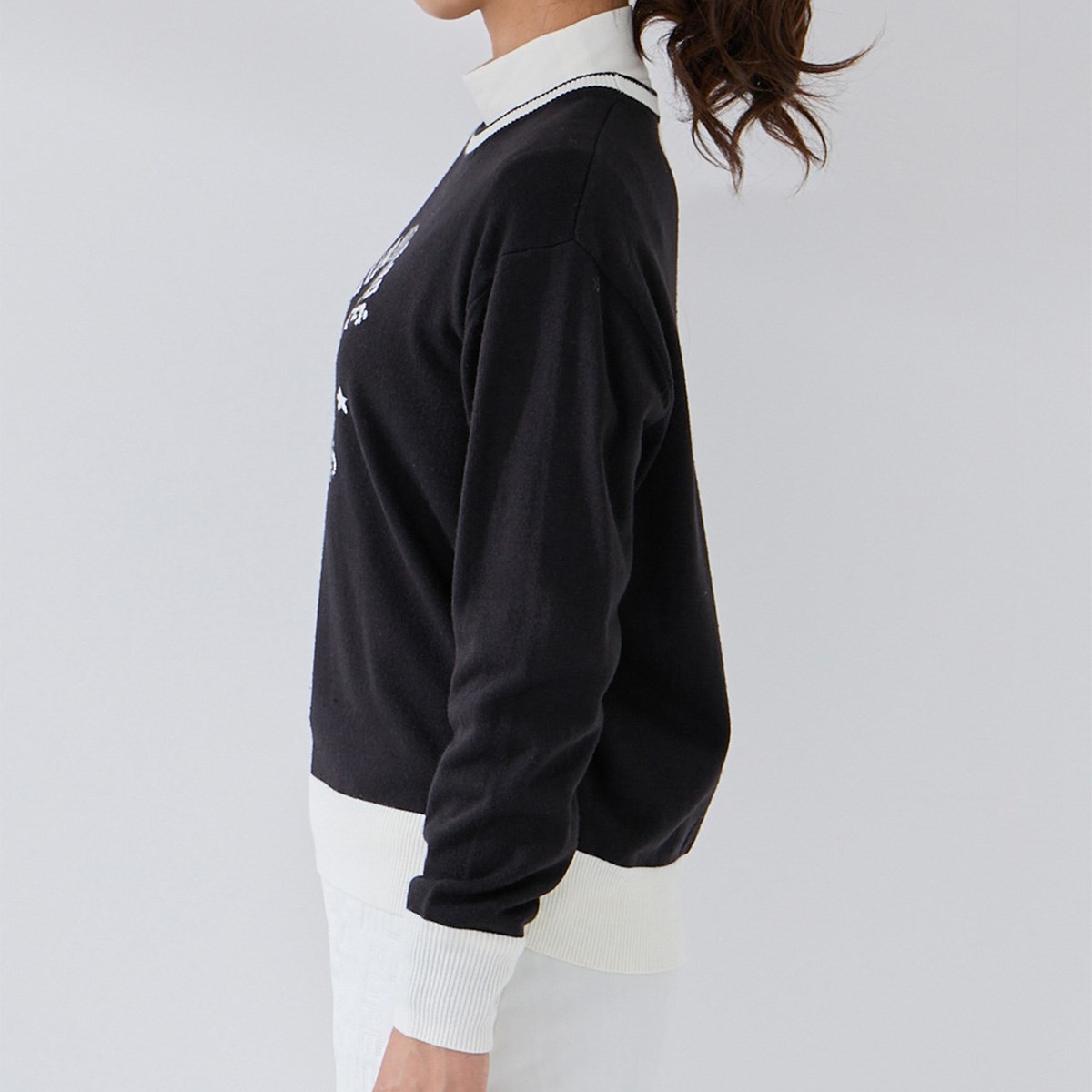 後ろ姿まで印象的に、スポーティラインとリゾート感が融合した大人のラフニットゴルフリゾート地をイメージしたマウンテンモチーフが印象的なプルオーバーセーター。