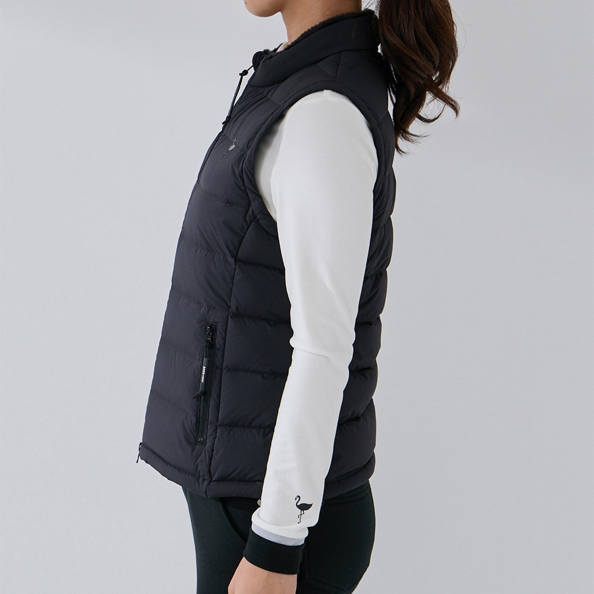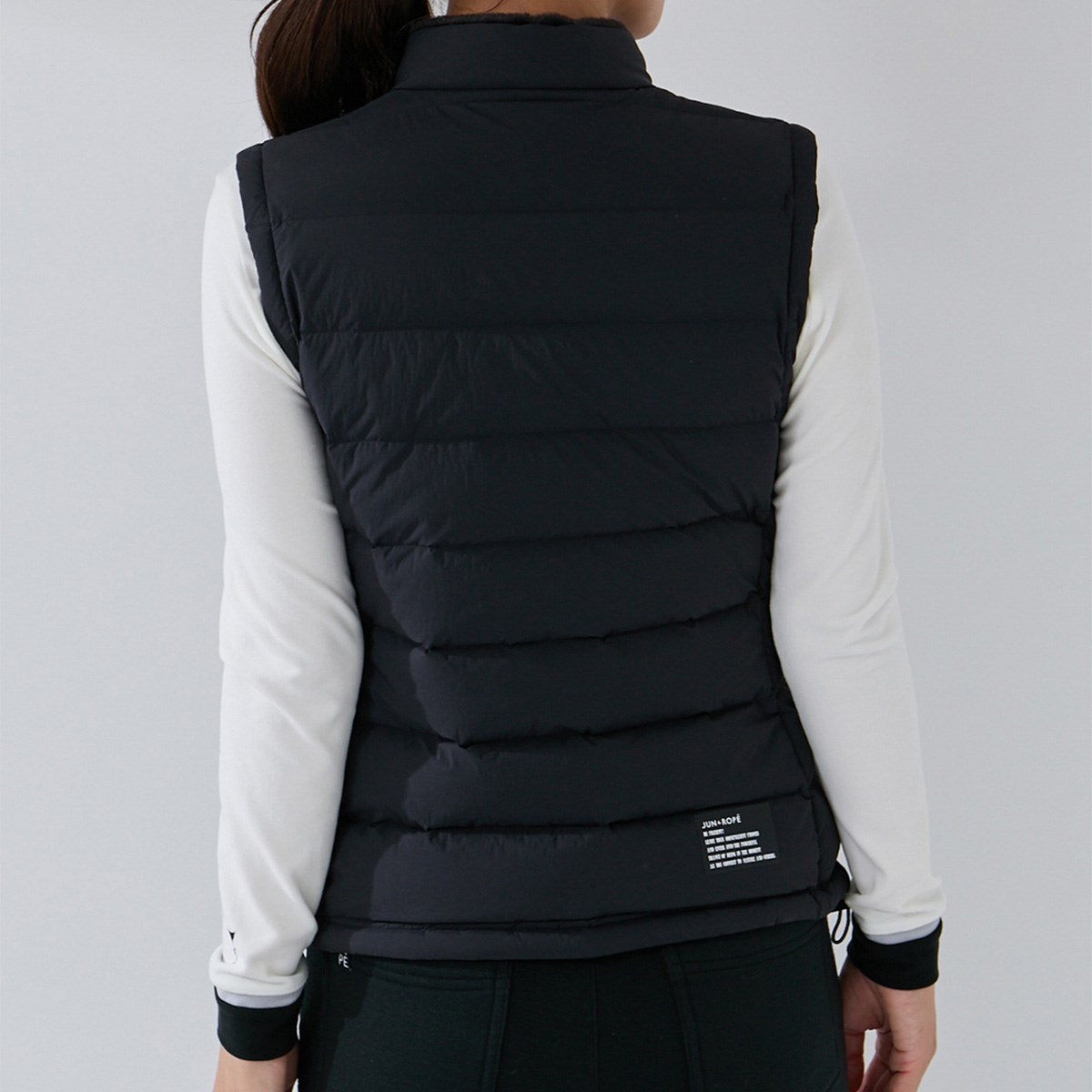 縫い目のないハイブリッド構造で、すっきりとした印象に仕上げたダウンベスト。