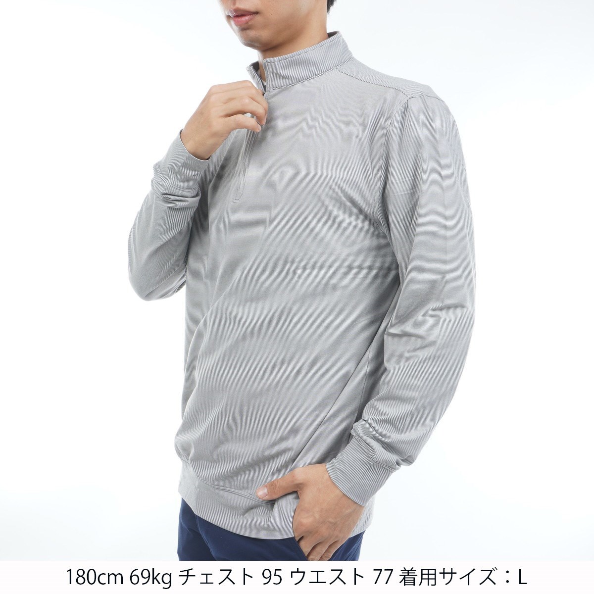 バターのように柔らかな肌触りのマイクロストライプニットと、自在な動きを叶える4方向ストレッチを採用。
