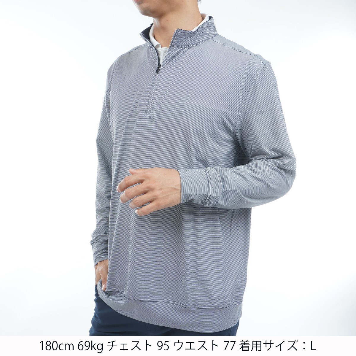 バターのように柔らかな肌触りのマイクロストライプニットと、自在な動きを叶える4方向ストレッチを採用。