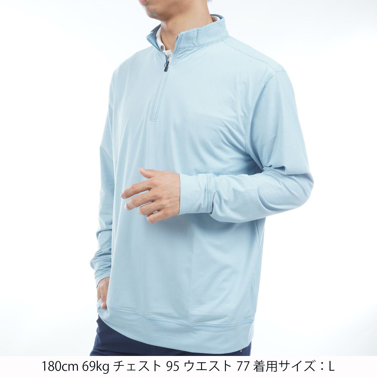 バターのように柔らかな肌触りのマイクロストライプニットと、自在な動きを叶える4方向ストレッチを採用。