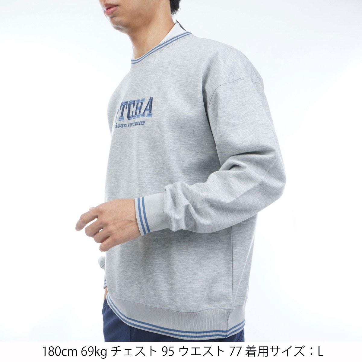 ドロップショルダー仕様でやや大きめのサイズ感のあるトレーナー。