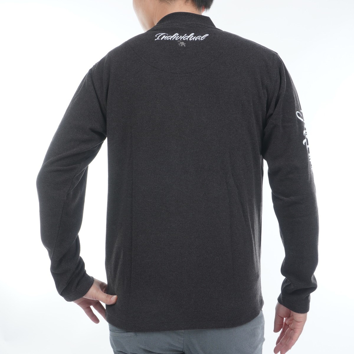 深みのある風合いが魅力の杢調素材を使用したスタイリッシュなハイネックデザイン。