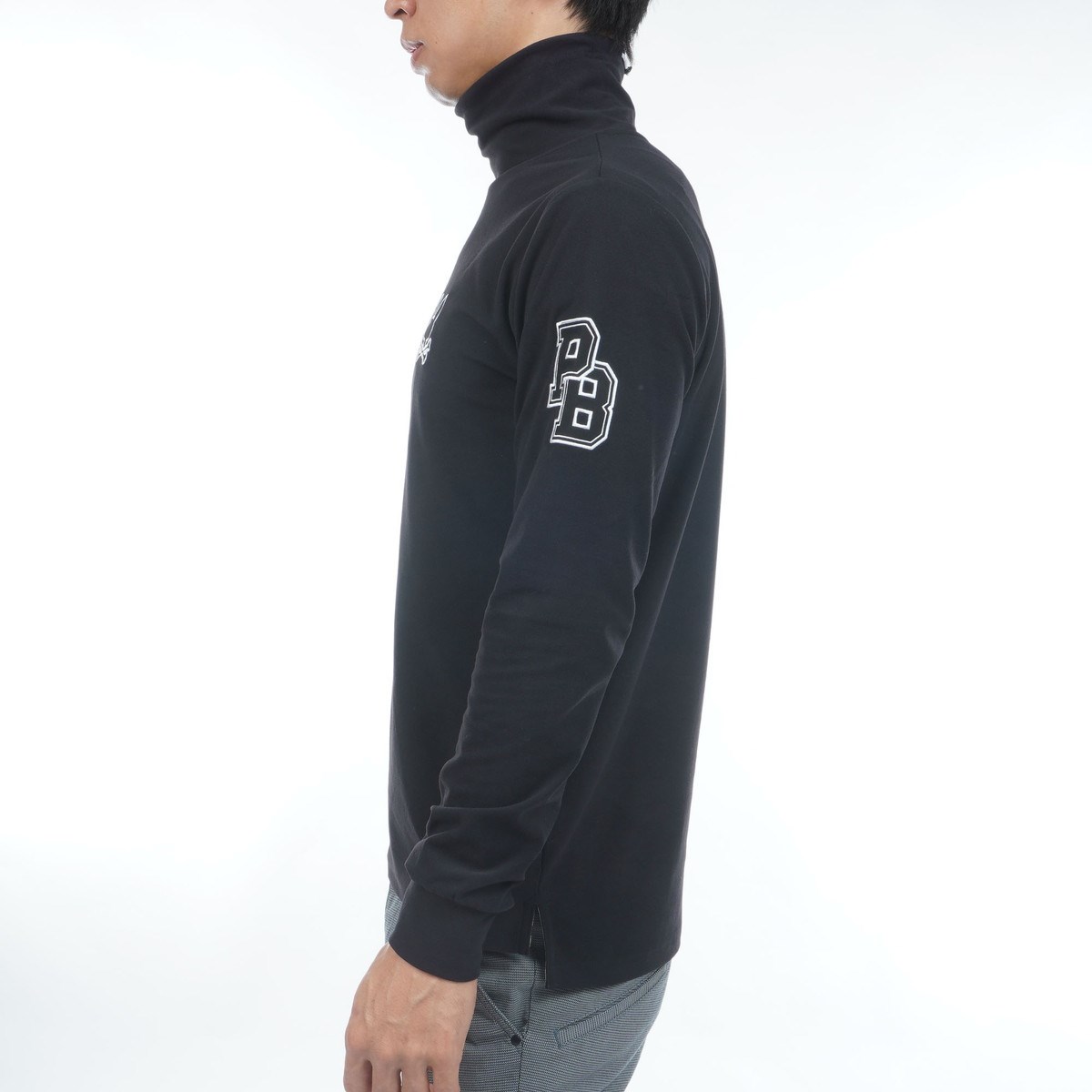 サイコバニー PSYCHO BUNNY GOLF アウトラインロゴ ストレッチ 裏起毛ハイネック長袖Tシャツ XL ブラック