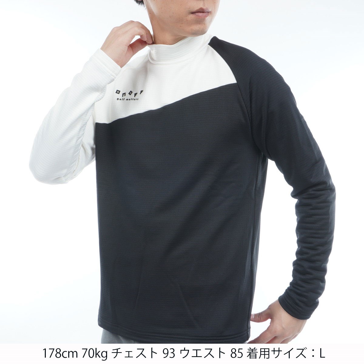 オノフ ONOFF ストレッチ 裏起毛 モックネック長袖シャツ LL ブラック/ホワイト 230