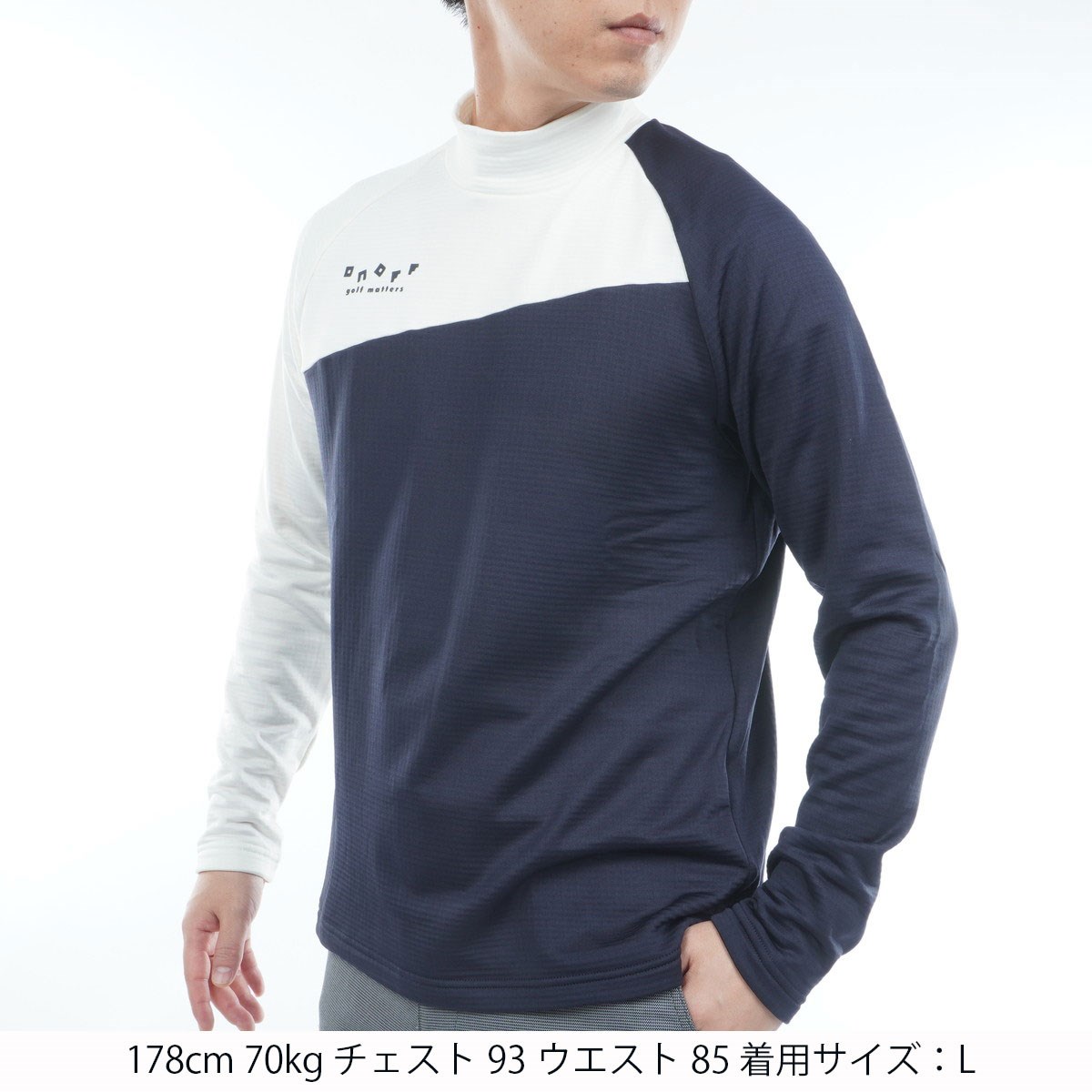オノフ ONOFF ストレッチ 裏起毛 モックネック長袖シャツ LL ネイビー/ホワイト 311
