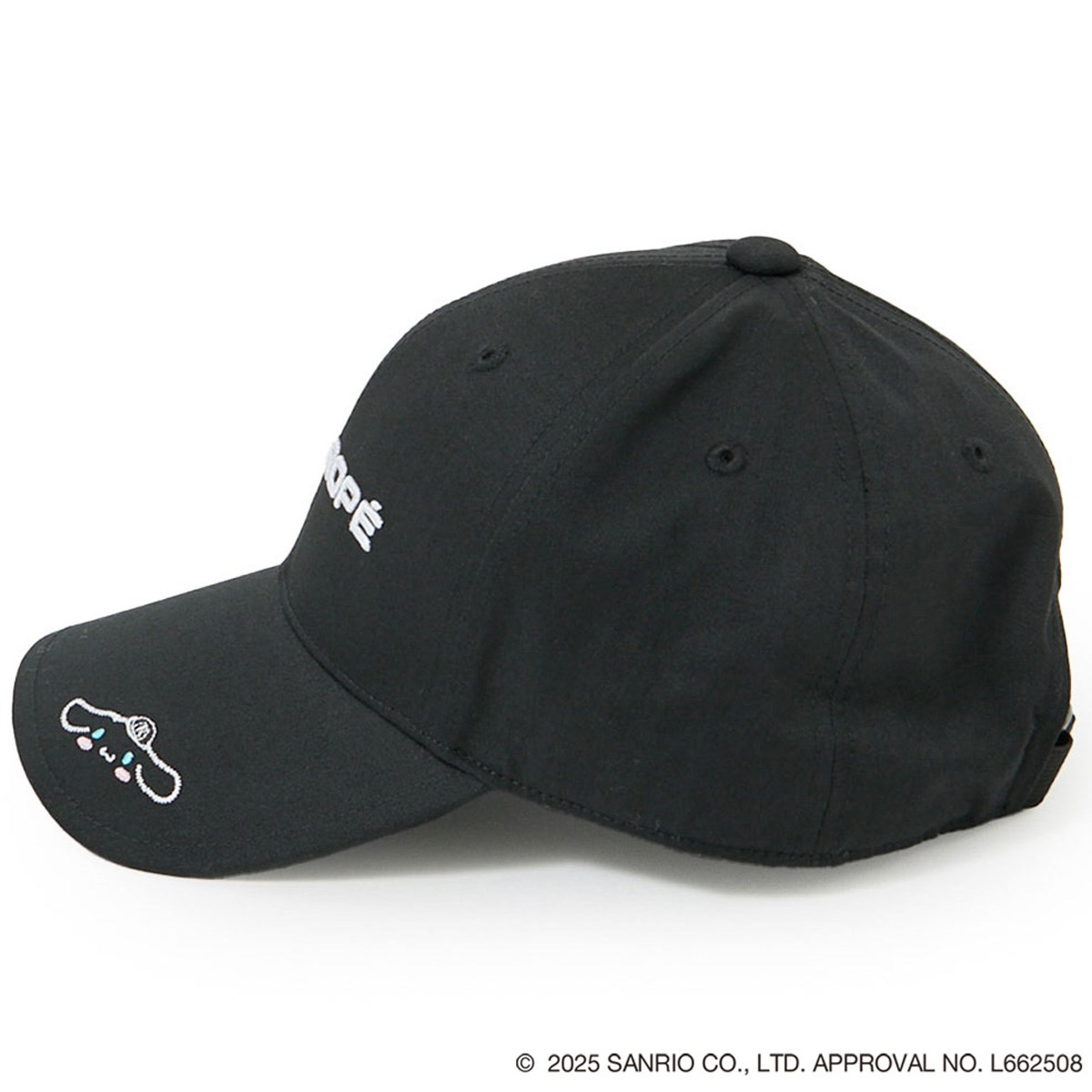 つばにシナモロールの顔が刺繍された、シンプルで可愛いデザインキャップ。