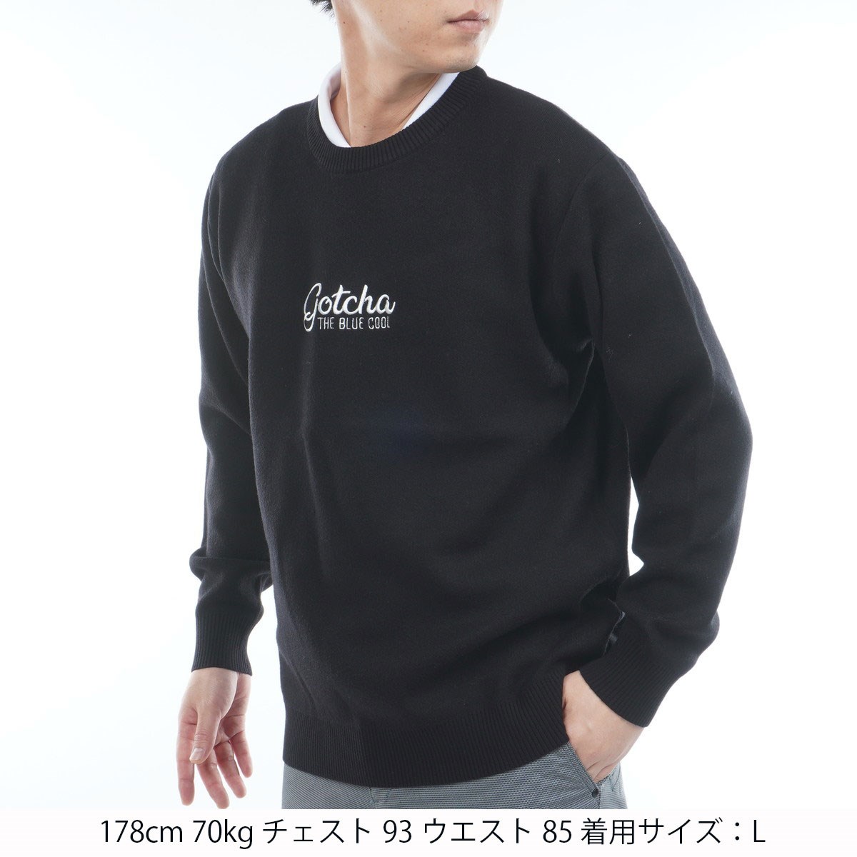 ガッチャゴルフ GOTCHA GOLF 静電気防止 ウォッシャブル もちもち縦ロゴクルーセーター M ブラック 009