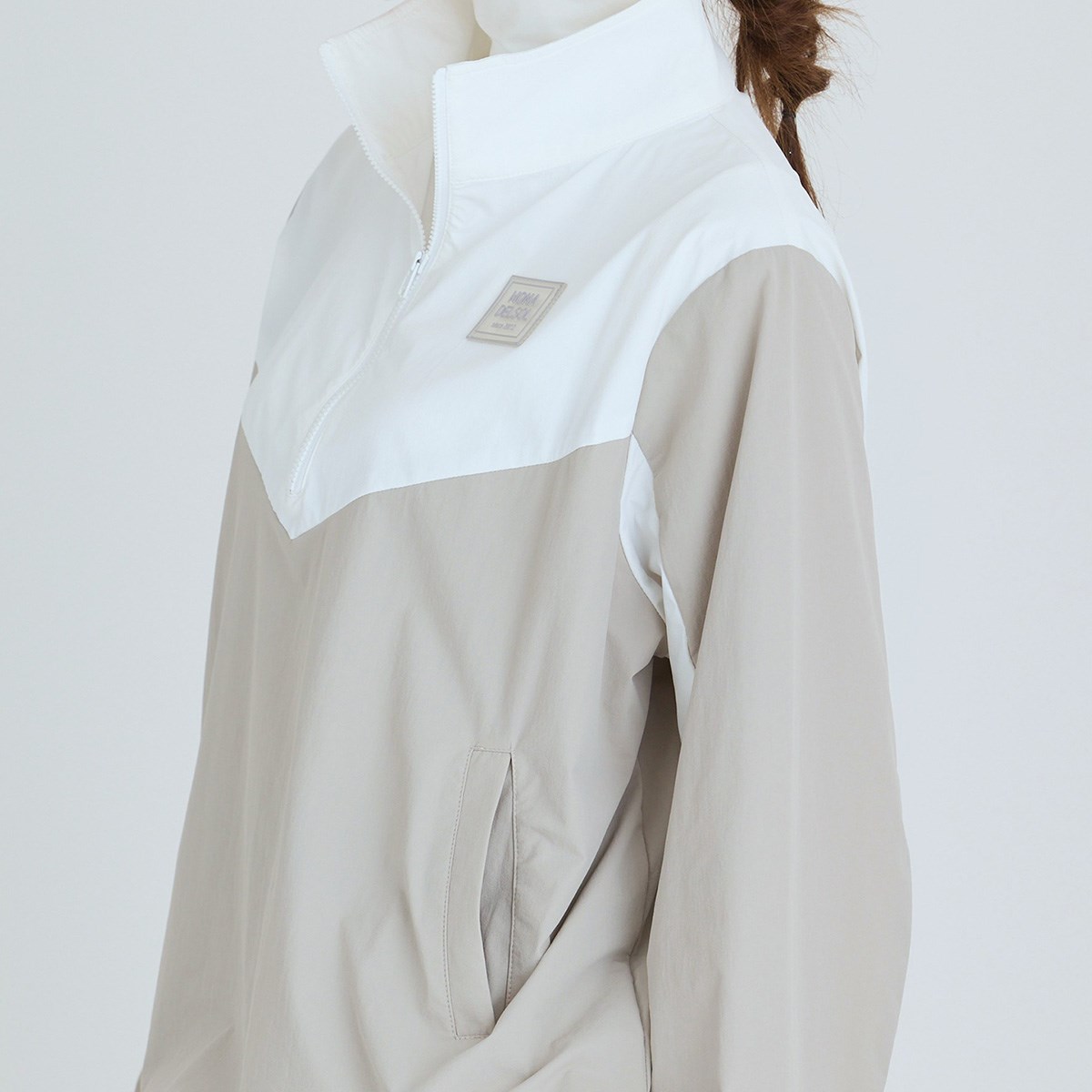 デルソルゴルフ DELSOL GOLF バイカラーバックプリントハーフジッププルオーバー M ベージュ レディス