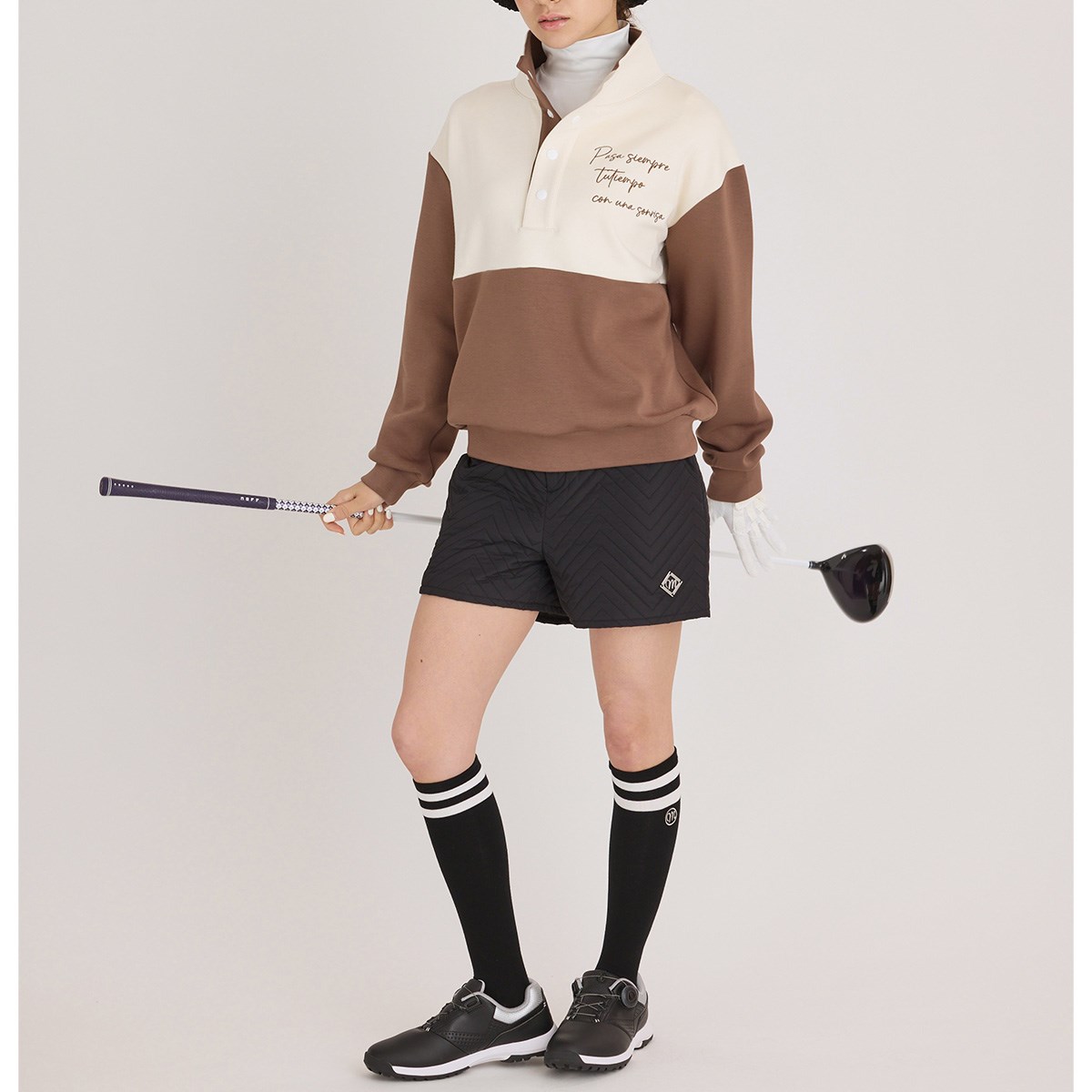 デルソルゴルフ DELSOL GOLF ハーフボタン裏起毛プルオーバー L ブラウン レディス