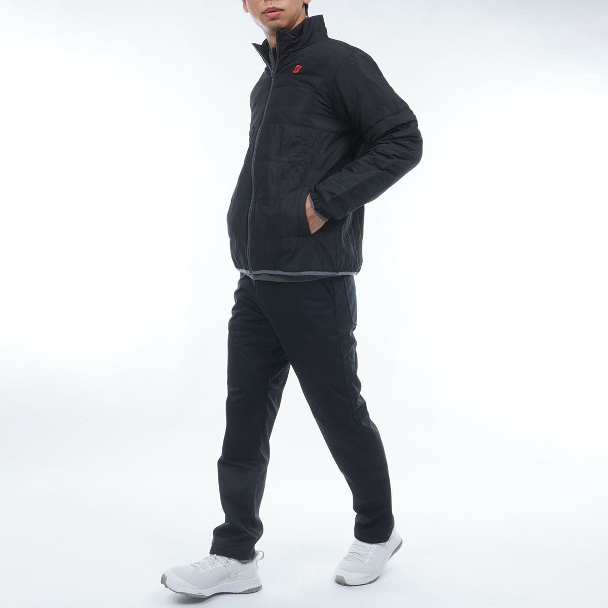 中綿ブルゾン、裏起毛パンツ、ハーフジップフリース、長袖モックネックシャツの4点セット。