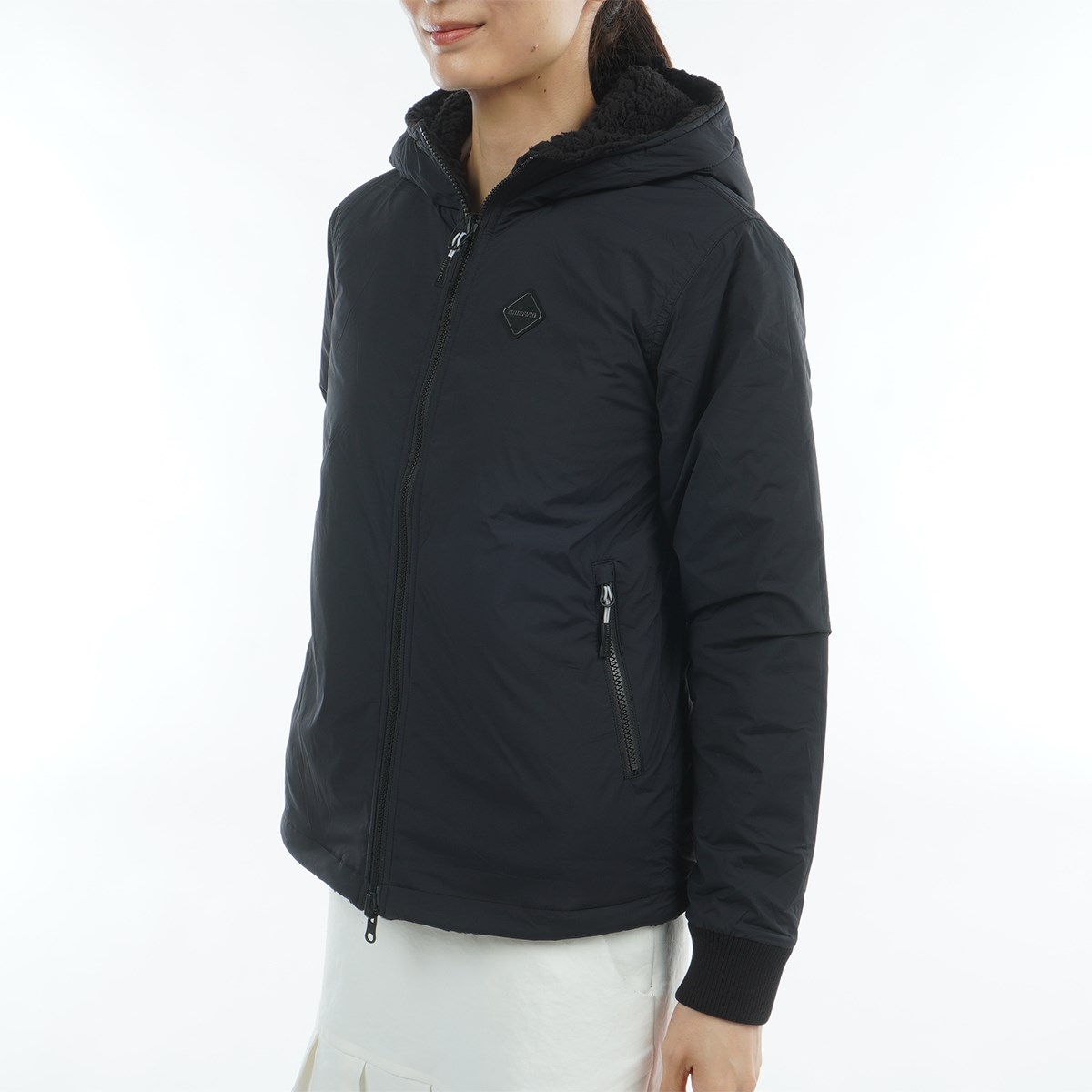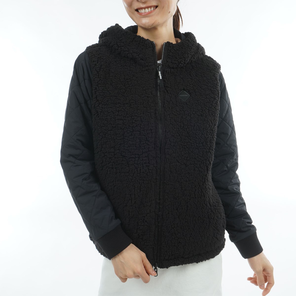 保温性の高いボア素材とキルティングの切り替えデザインが真冬のラウンドに最適な防寒アウターです。