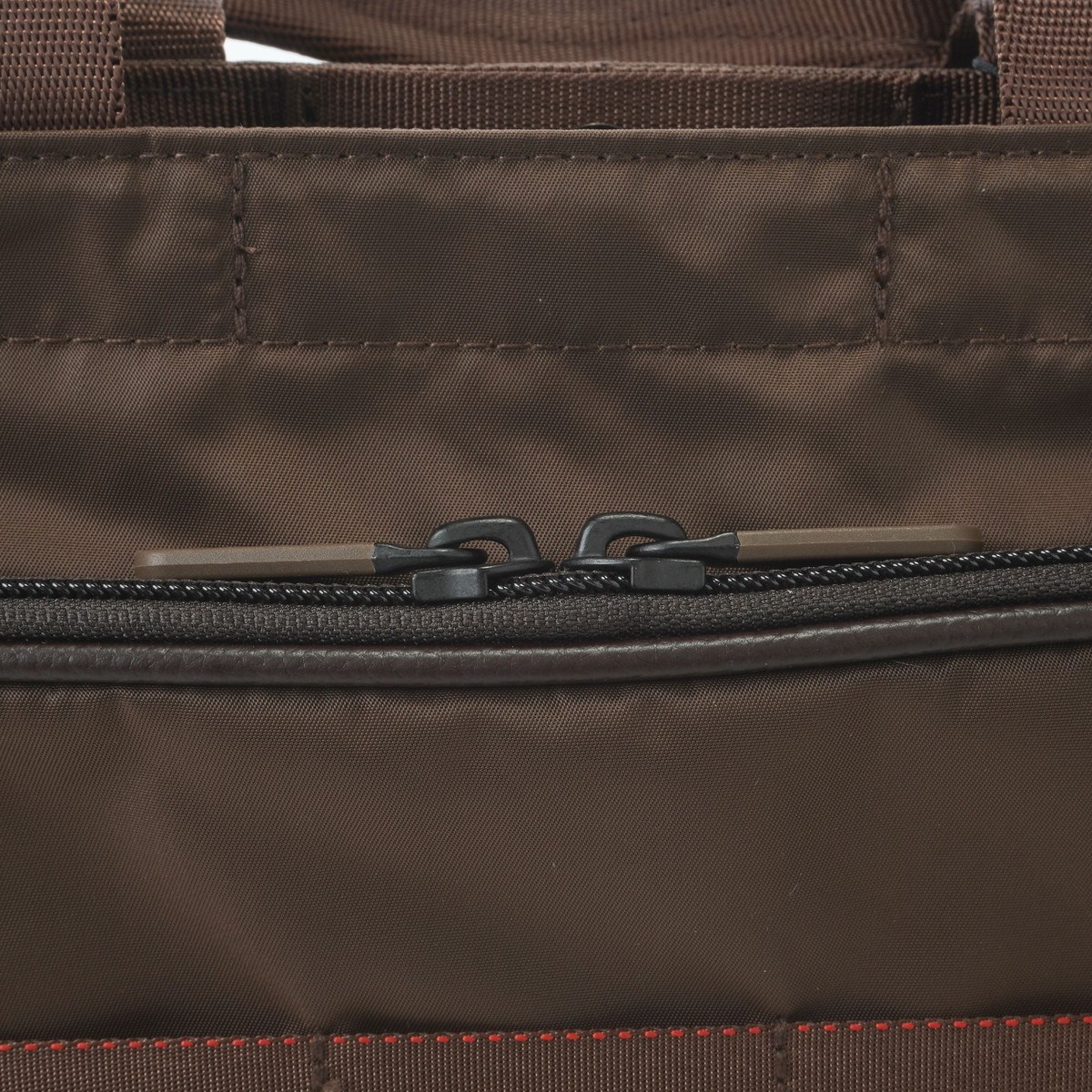 上質な光沢感とハードな使用にも耐えうるCORDURA®ナイロンツイル素材をメインにシュリンクレザーをコンビネーションでデザイン。