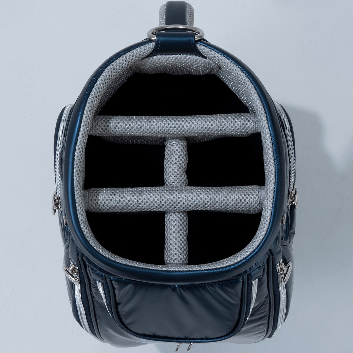 ・デザイン「パフバッグをイメージしたキルティング加工と光沢感のあるポリウレタン素材が「映える」キャディバッグ。