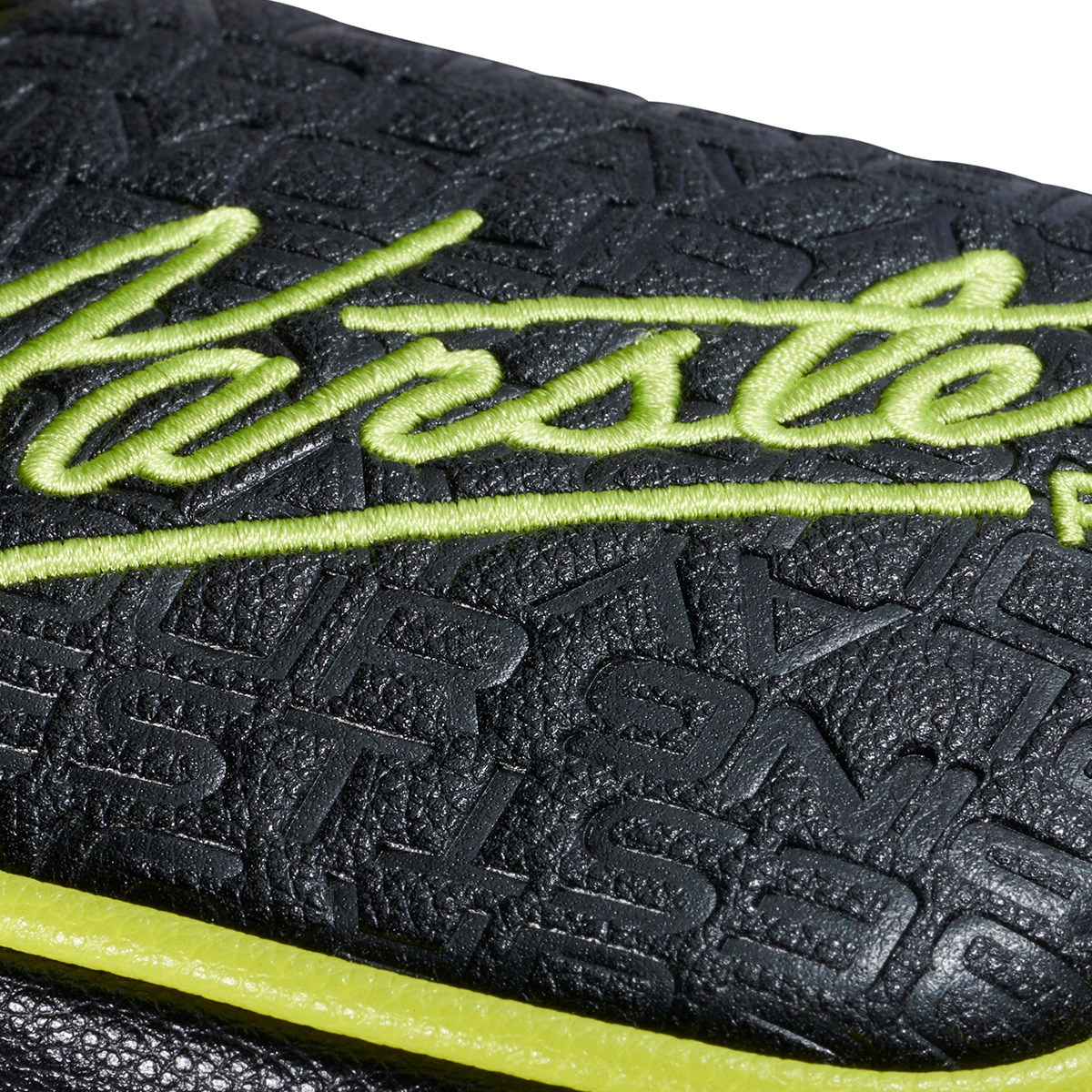 ・ディテール「インパクトのある刺繍とエンボス加工を施した合成皮革が高級感を演出。