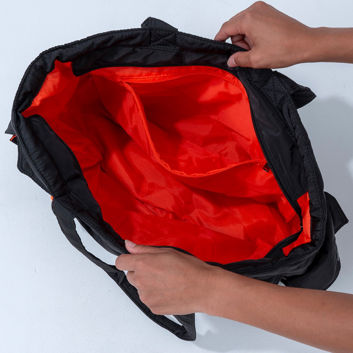 ・ディテール「アウターに差し込みポケット5か所、インナーにジップ付きポケット1か所。