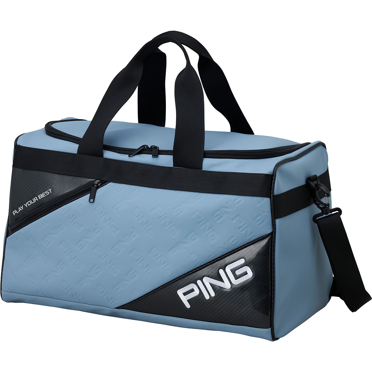 ・デザイン「マットポリウレタン素材にエンボスロゴとエナメル部分使いでアクセントをつけたオーソドックスなボストンバッグ。