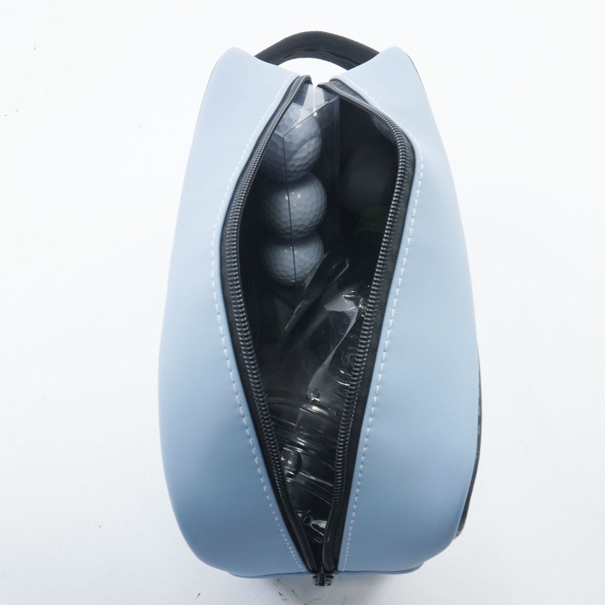 ・デザイン「マットポリウレタン素材にエンボスロゴとエナメル部分使いでアクセントをつけたオーソドックスなラウンドポーチ。