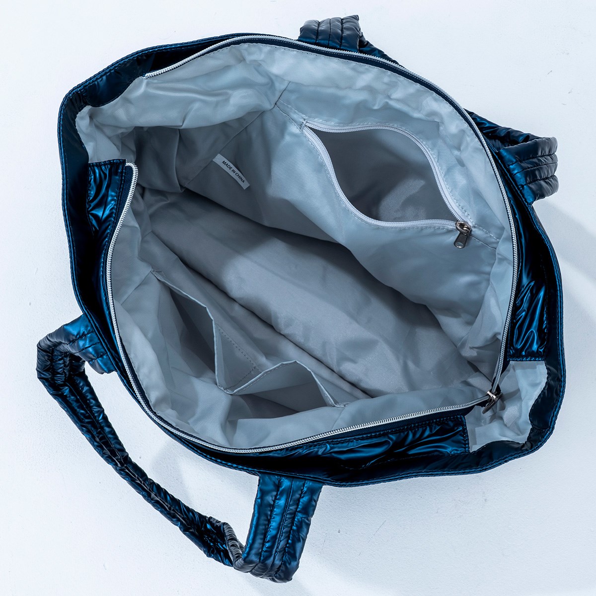 ・デザイン「パフバッグをイメージしたキルティング加工と光沢感のあるポリウレタン素材が「映える」トートバッグ。