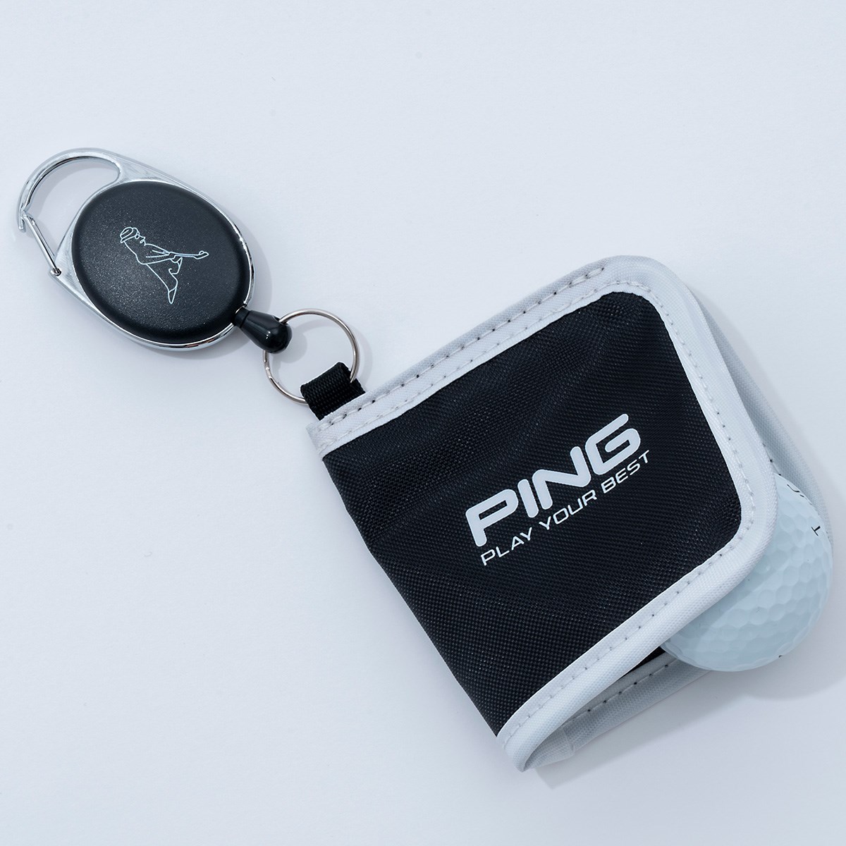 ・デザイン「PINGロゴがポイントのシンプルなリール付きボールクリーナー。」