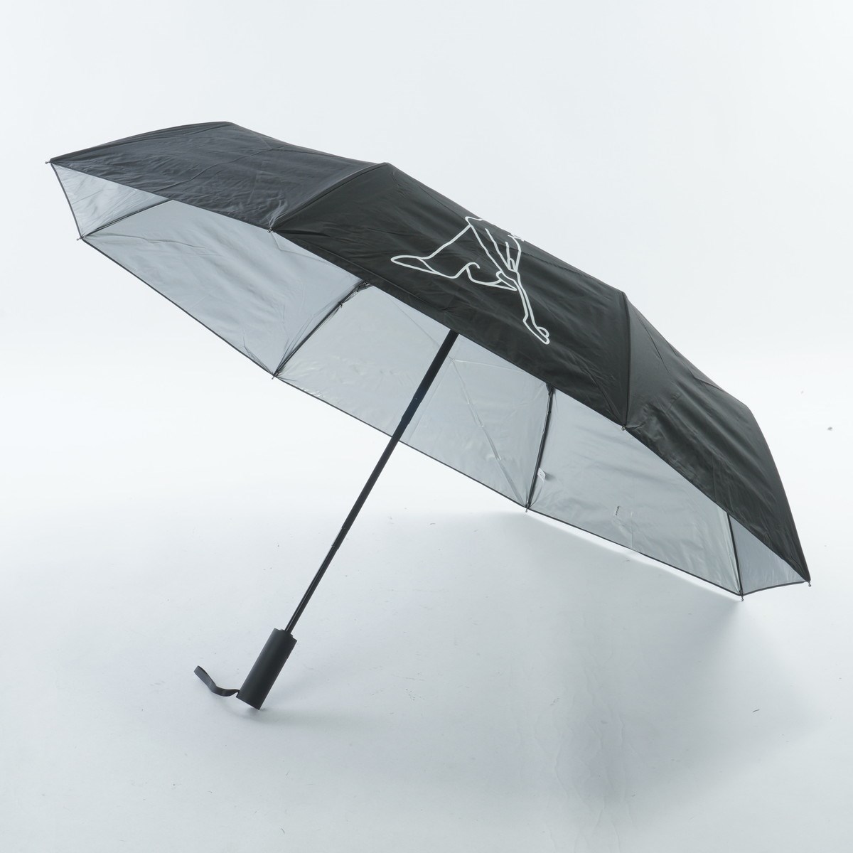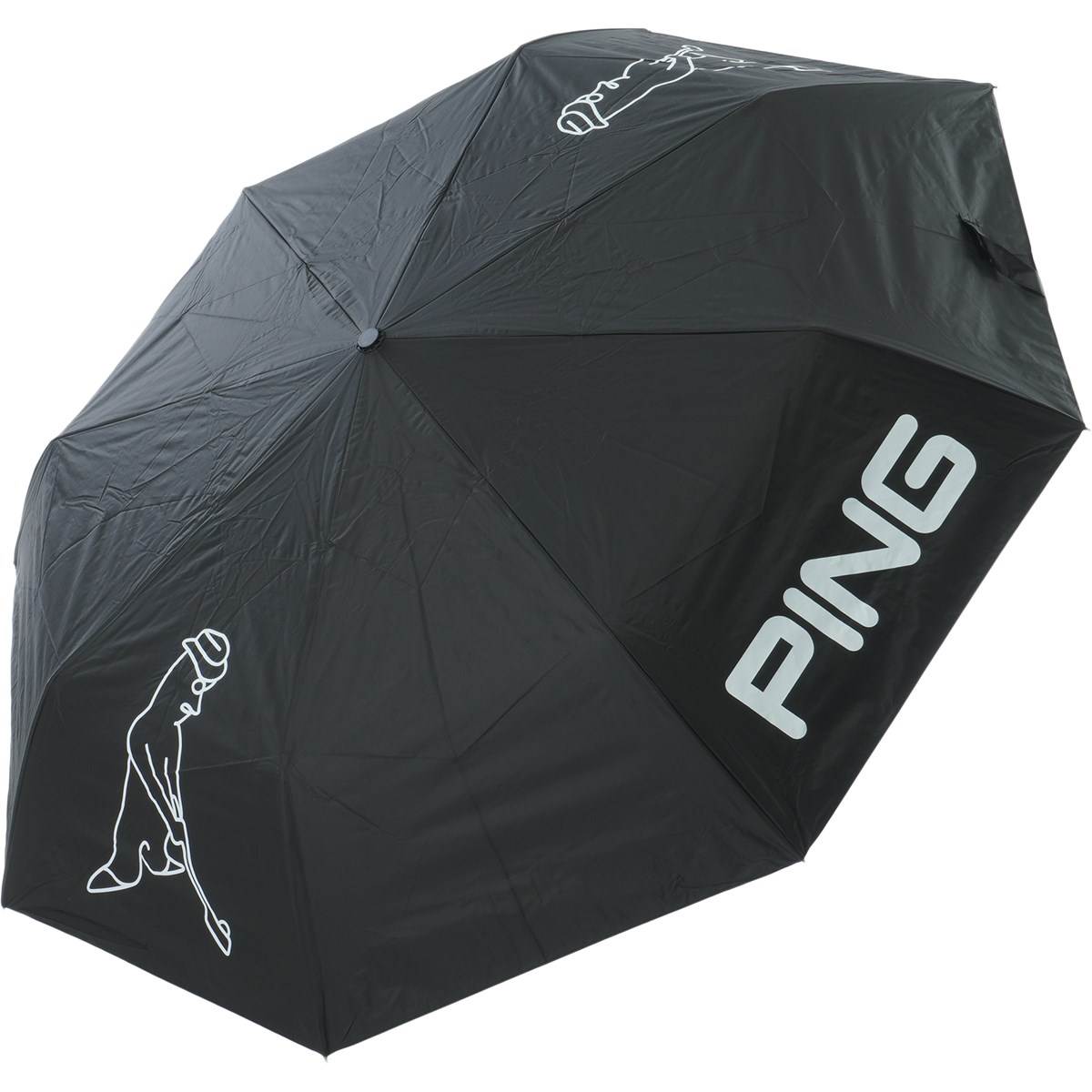 ・デザイン「PINGロゴとMR.PINGのプリントが目を引く晴雨兼用折りたたみ傘。」
