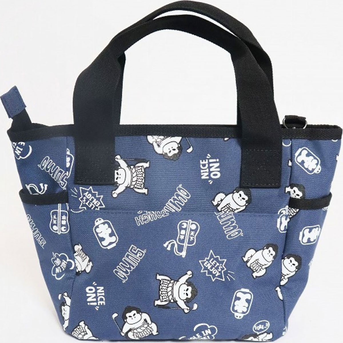 相撲をシルエット風にしたデザインが施されたミニトートバッグ。