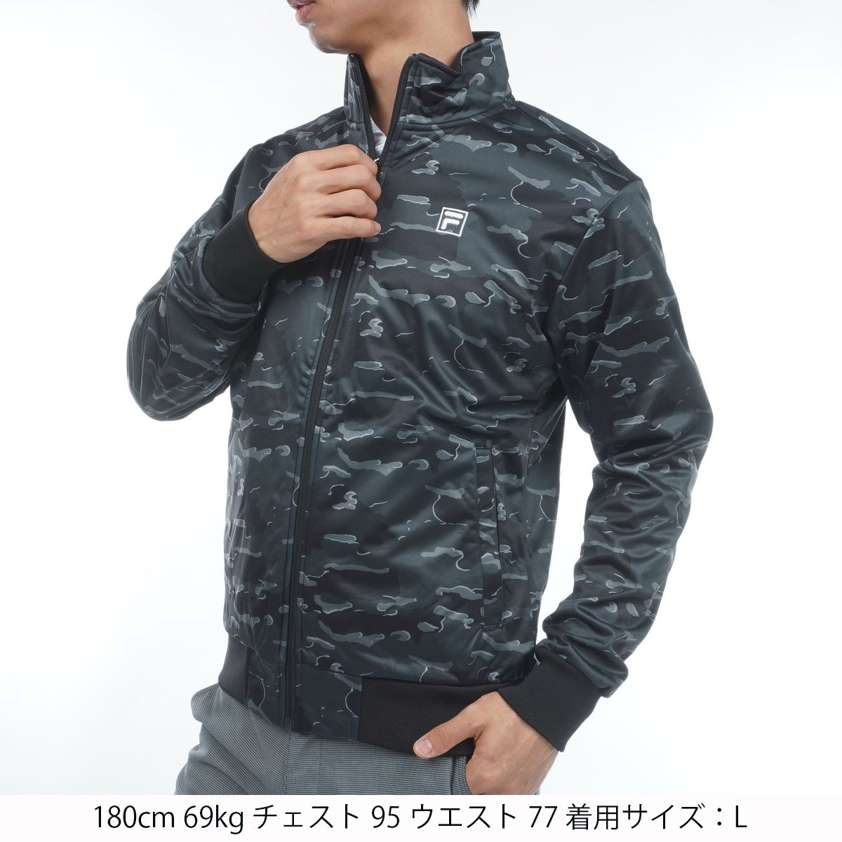 フィラ FILA ストレッチ カモ柄 ボンディングブルゾン 3L ブラック