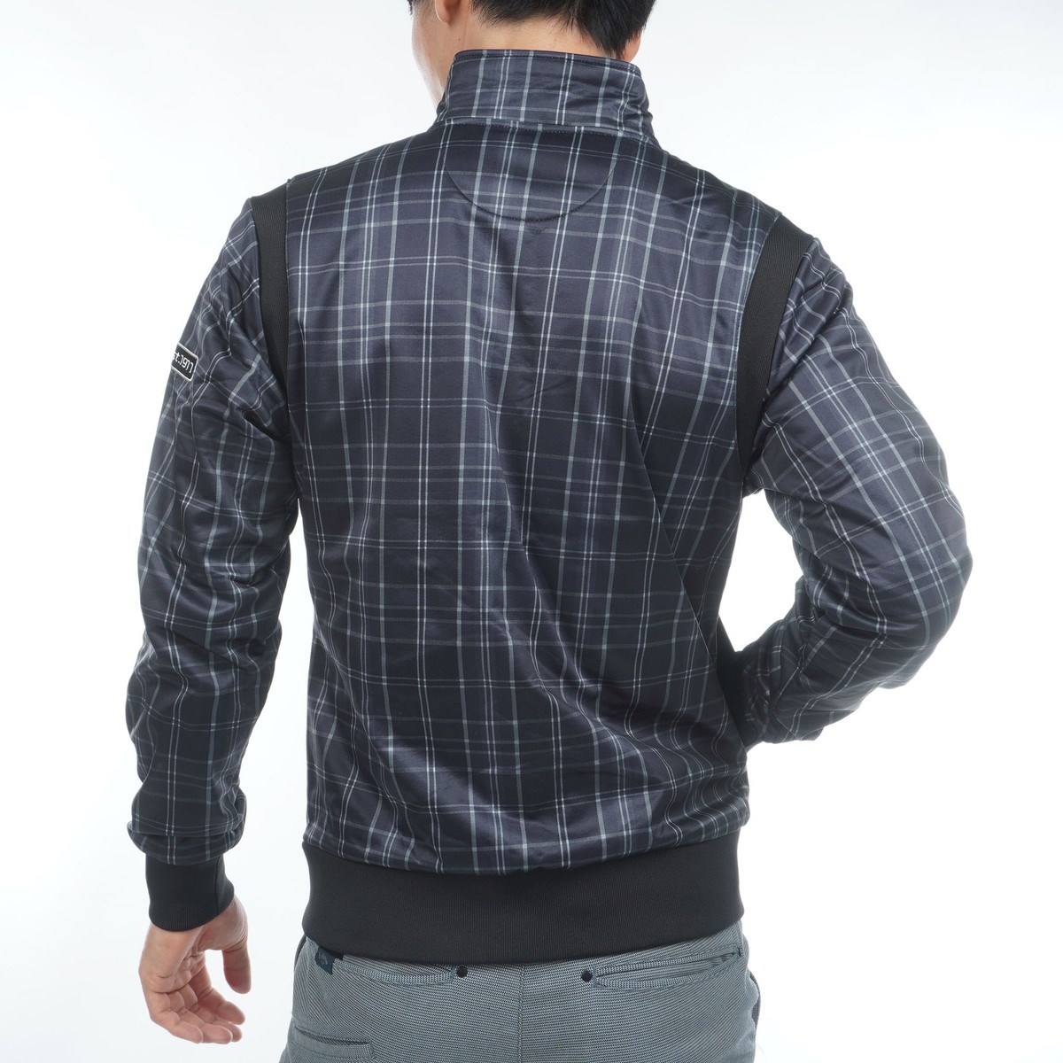 ストレッチ性に優れたマット調のチェック柄プリント素材に、防風フィルムとフリースをボンディングした「ウインドガードウォーム」素材を採用し、衣服内の体温をしっかりキープ。