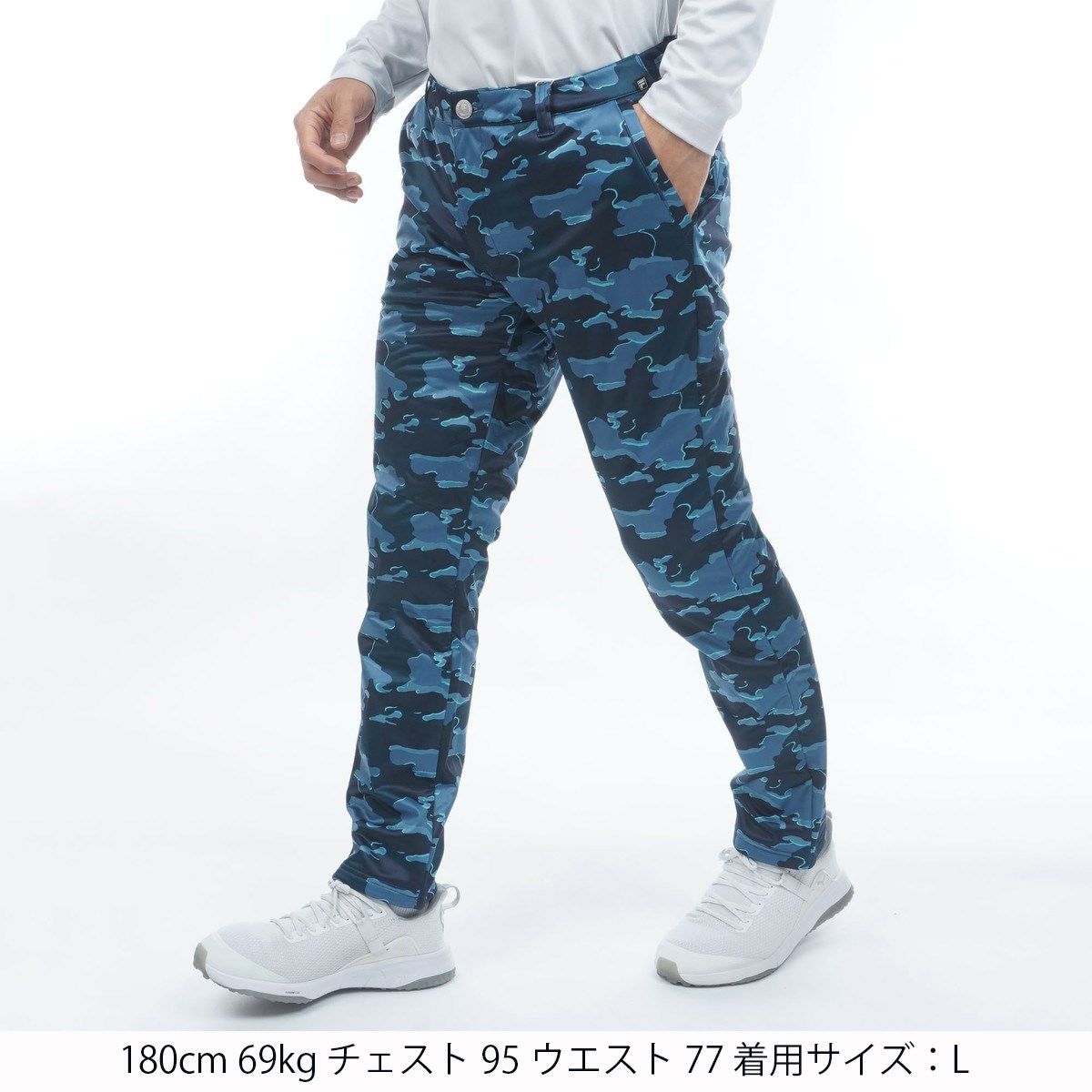 フィラ FILA ストレッチ カモ柄 ボンディングパンツ LL ブルー