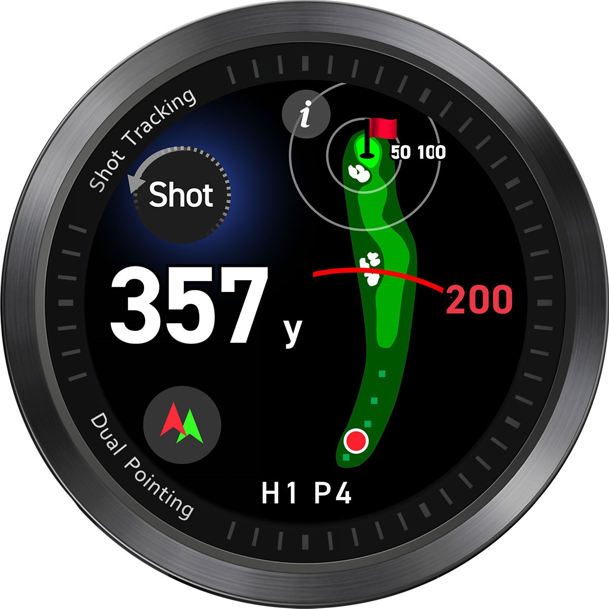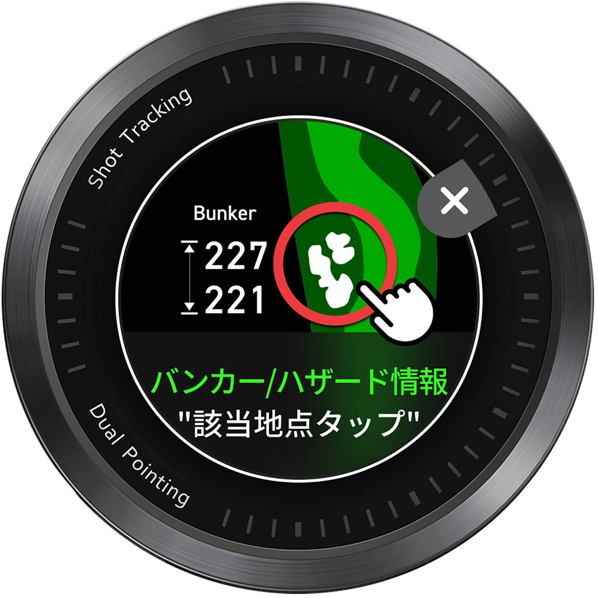 コースビュー、アプローチビュー、パットビュー、パットガイド、リアルグリーンアンジュレーション、フラッシュバック、デュアルポインティング、V-AI、ショット&パットトラッキング、ショット飛距離、アクションキー、マップ拡大、風向/風速、天気、「MyVoiceCaddie」アプリ対応