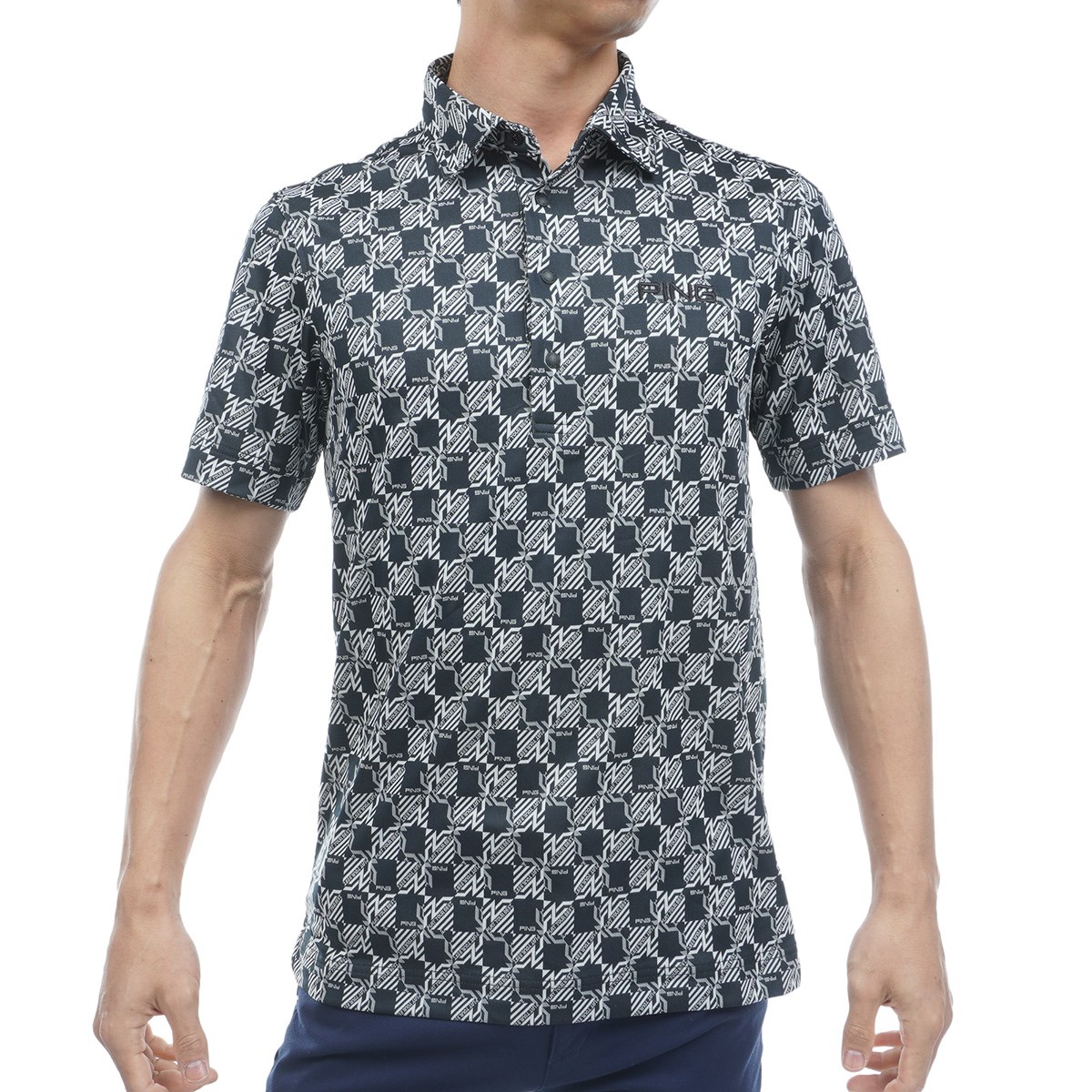 ピン PING AZモノグラムジャカード 半袖ポロシャツ M グレー 020