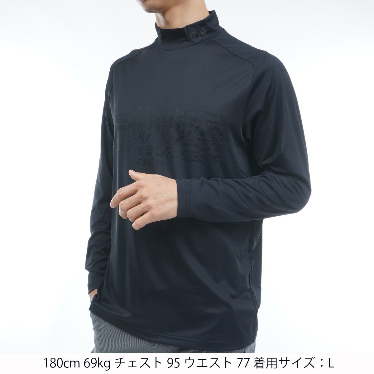 ピン PING ロゴジャカードハイネック長袖シャツ M ブラック 010