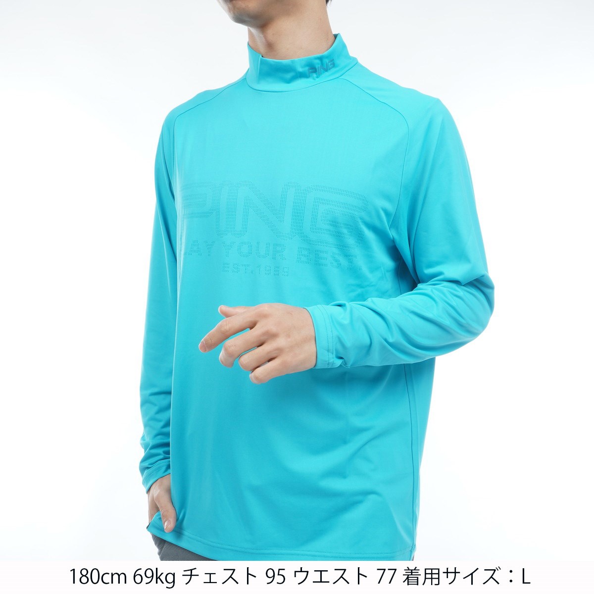 ピン PING ロゴジャカードハイネック長袖シャツ 3L ターコイズ 111