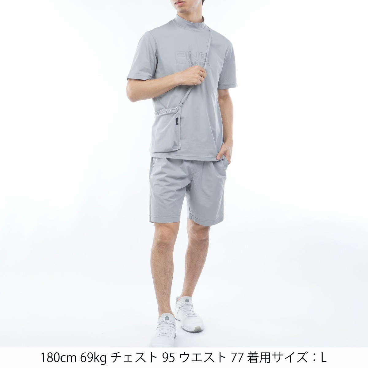 ピン PING ハイネック半袖シャツ×ショートパンツ S グレー 020