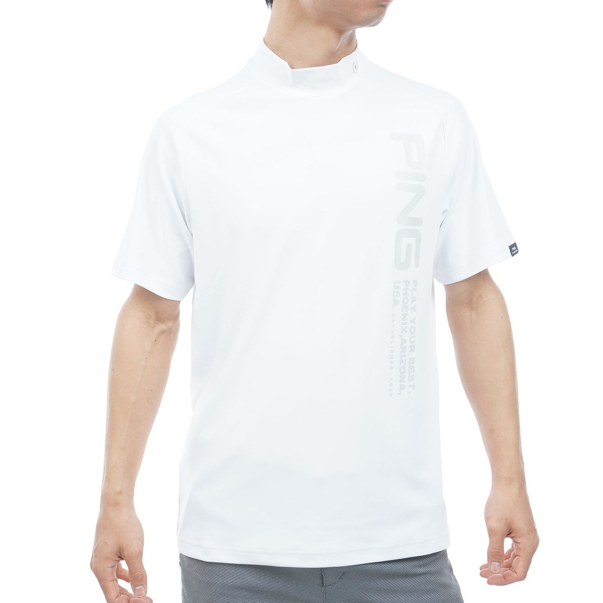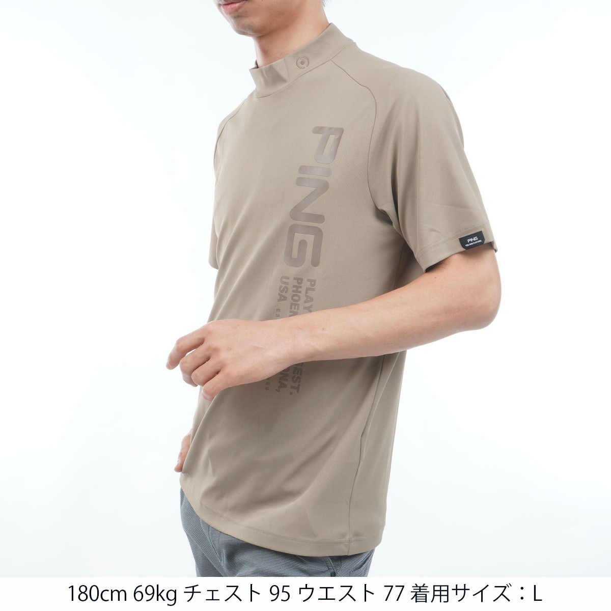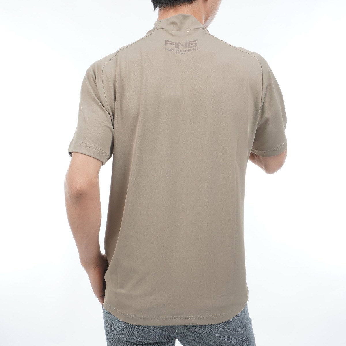 ピン PING テラ鹿の子ハイネック半袖シャツ S ベージュ 040