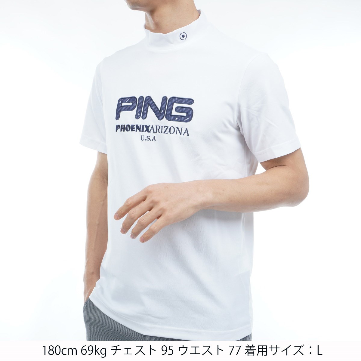 ピン PING アップリケハイネック半袖シャツ 3L ホワイト 030