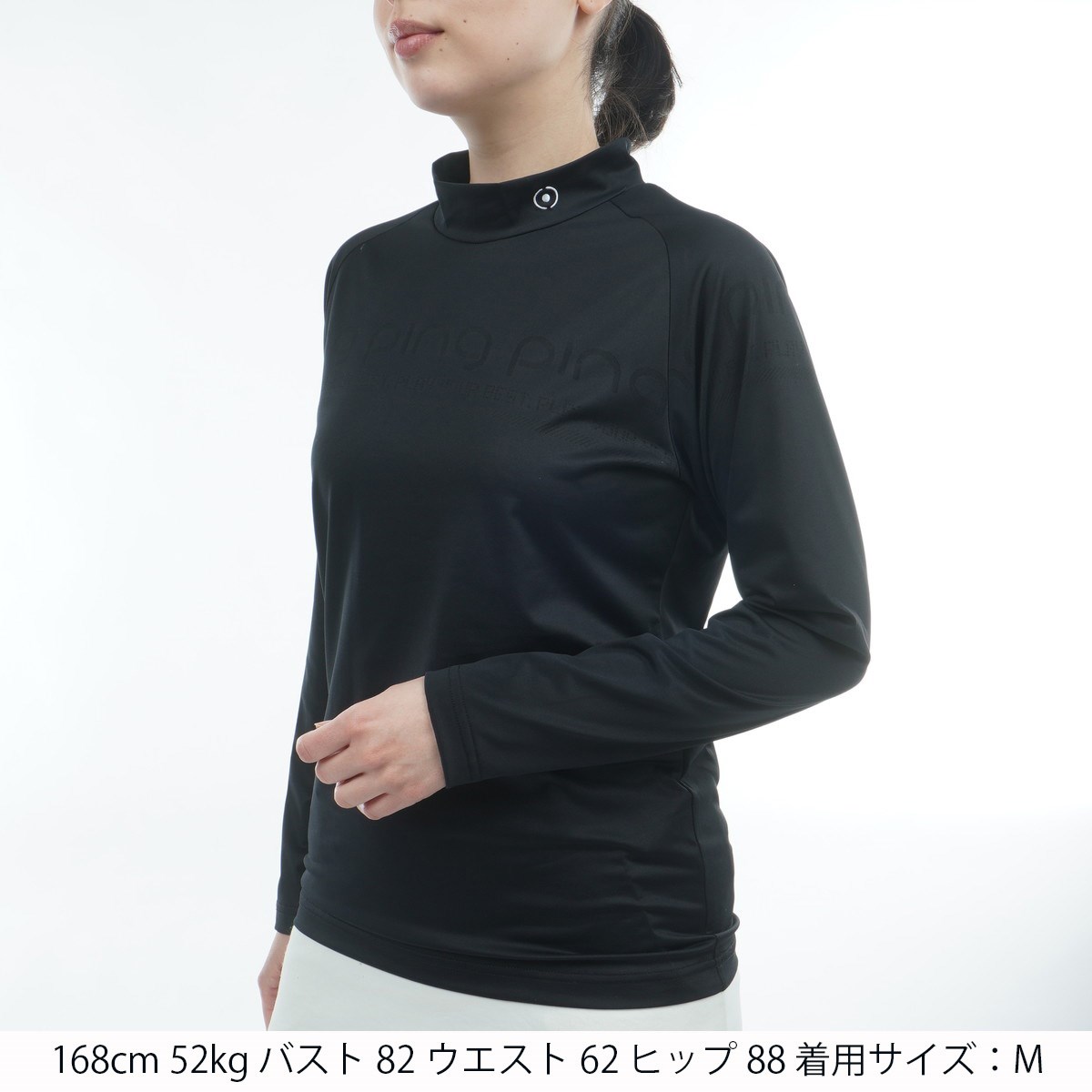 ピン PING パネルジャカードハイネック長袖シャツ L ブラック 010 レディス