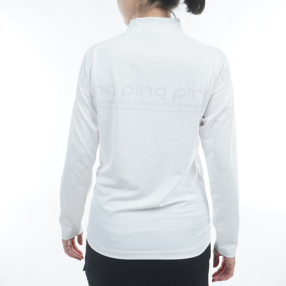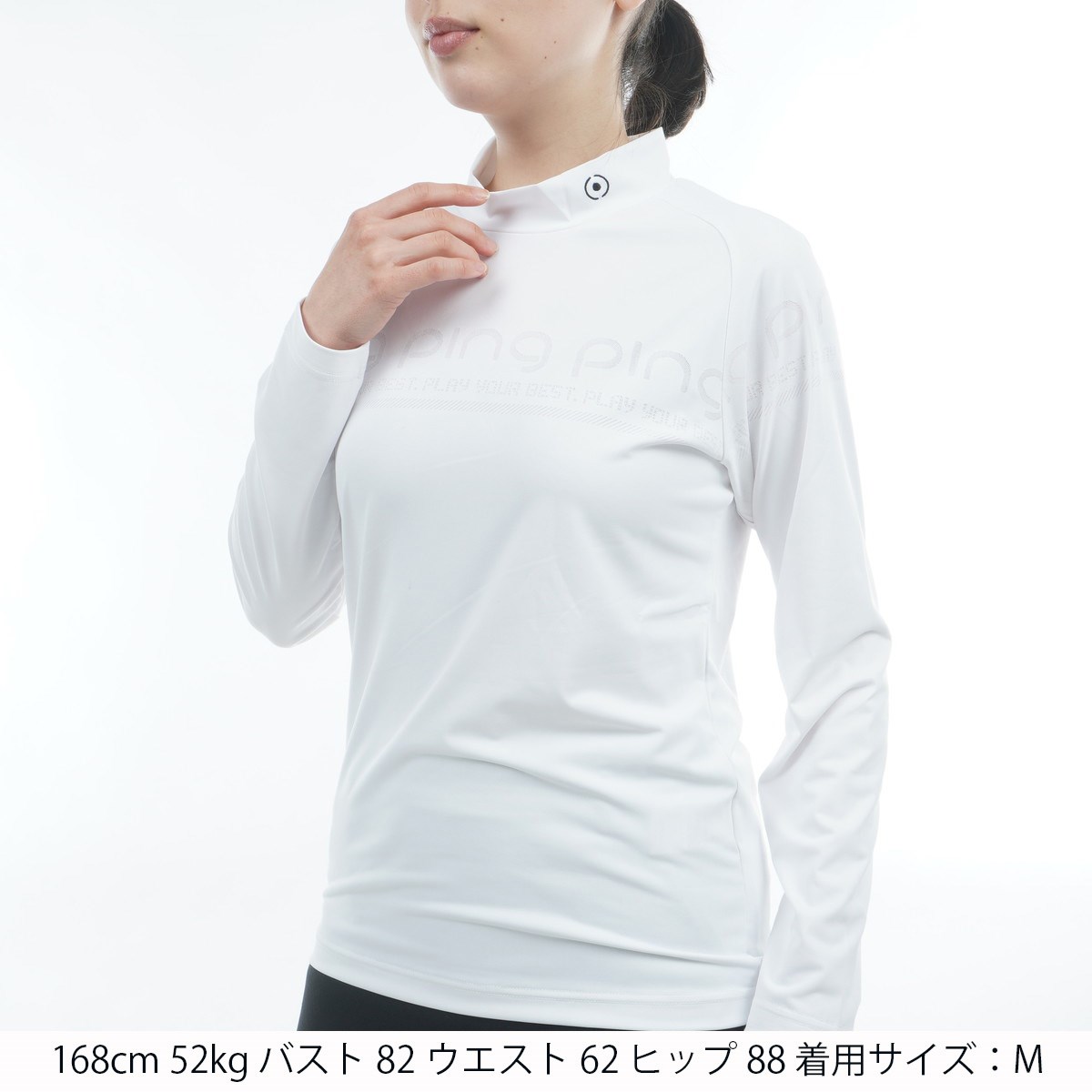 ピン PING パネルジャカードハイネック長袖シャツ M ホワイト 030 レディス