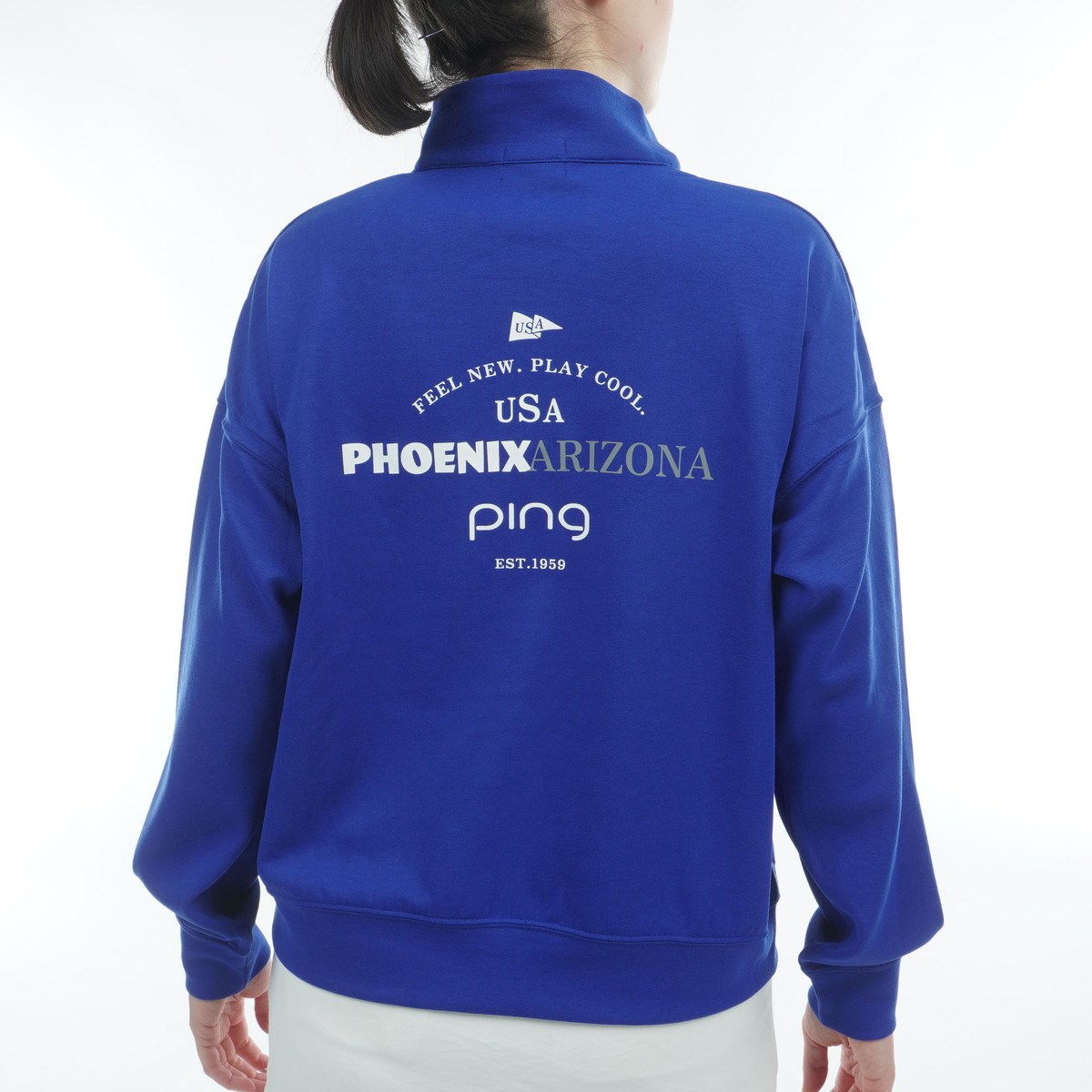 ピン PING ドライミックスアイストーン ハーフジップ長袖シャツ M ブルー 110 レディス