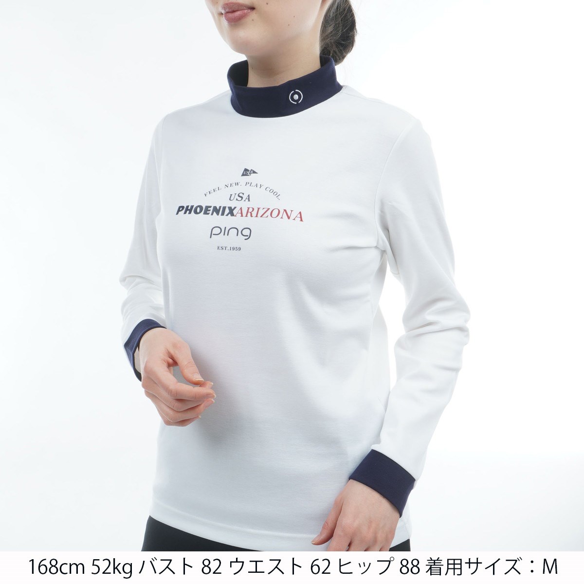 ピン PING 冷感ポンチバイカラーハイネック長袖シャツ LL ホワイト 030 レディス