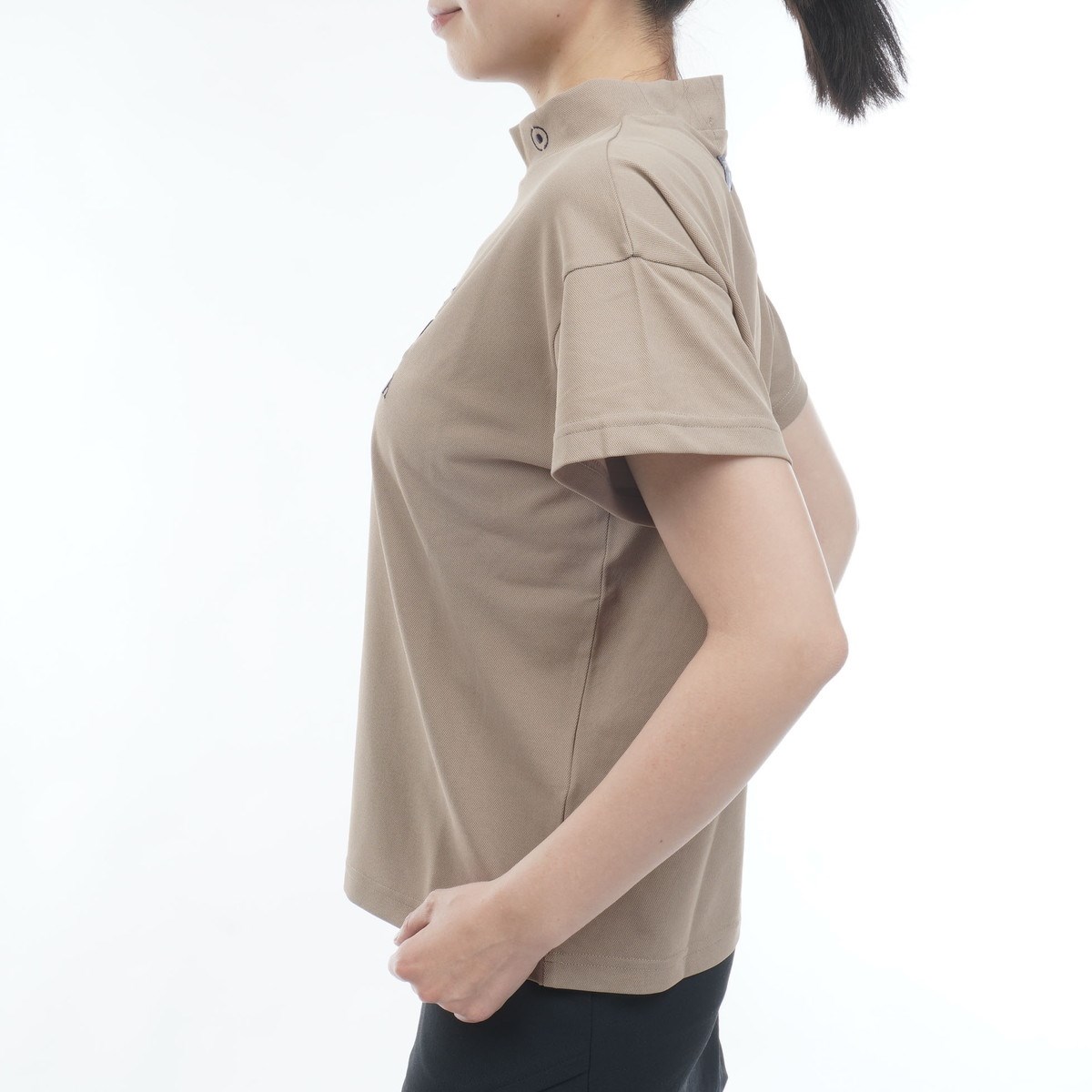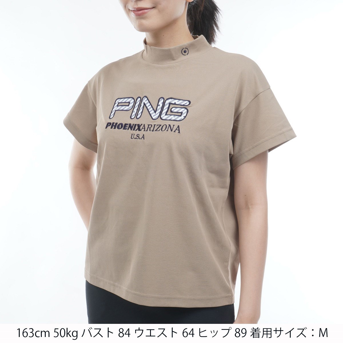 ピン PING アップリケハイネック半袖シャツ LL ベージュ 040 レディス