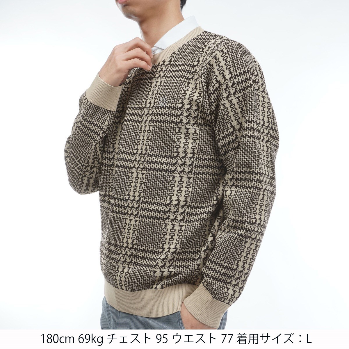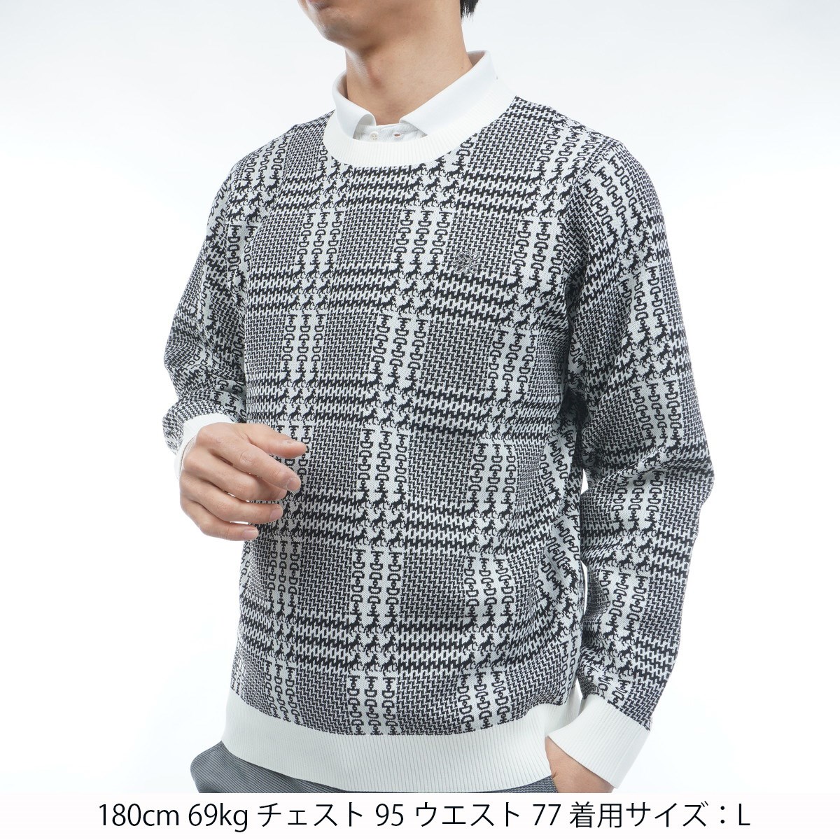 セント・アンドリュース St ANDREWS ホースビットチェックジャカード プルオーバーセーター L ホワイト 030
