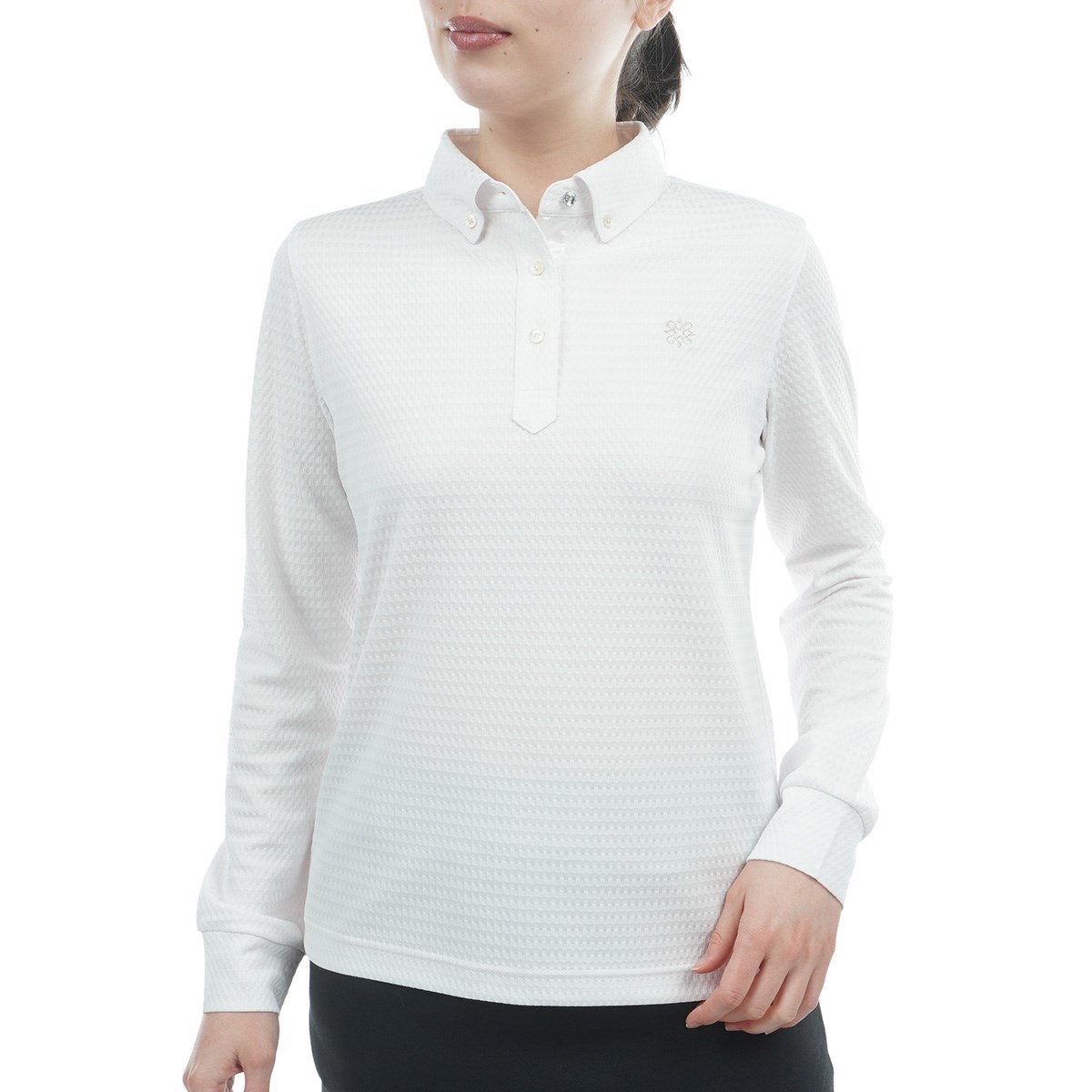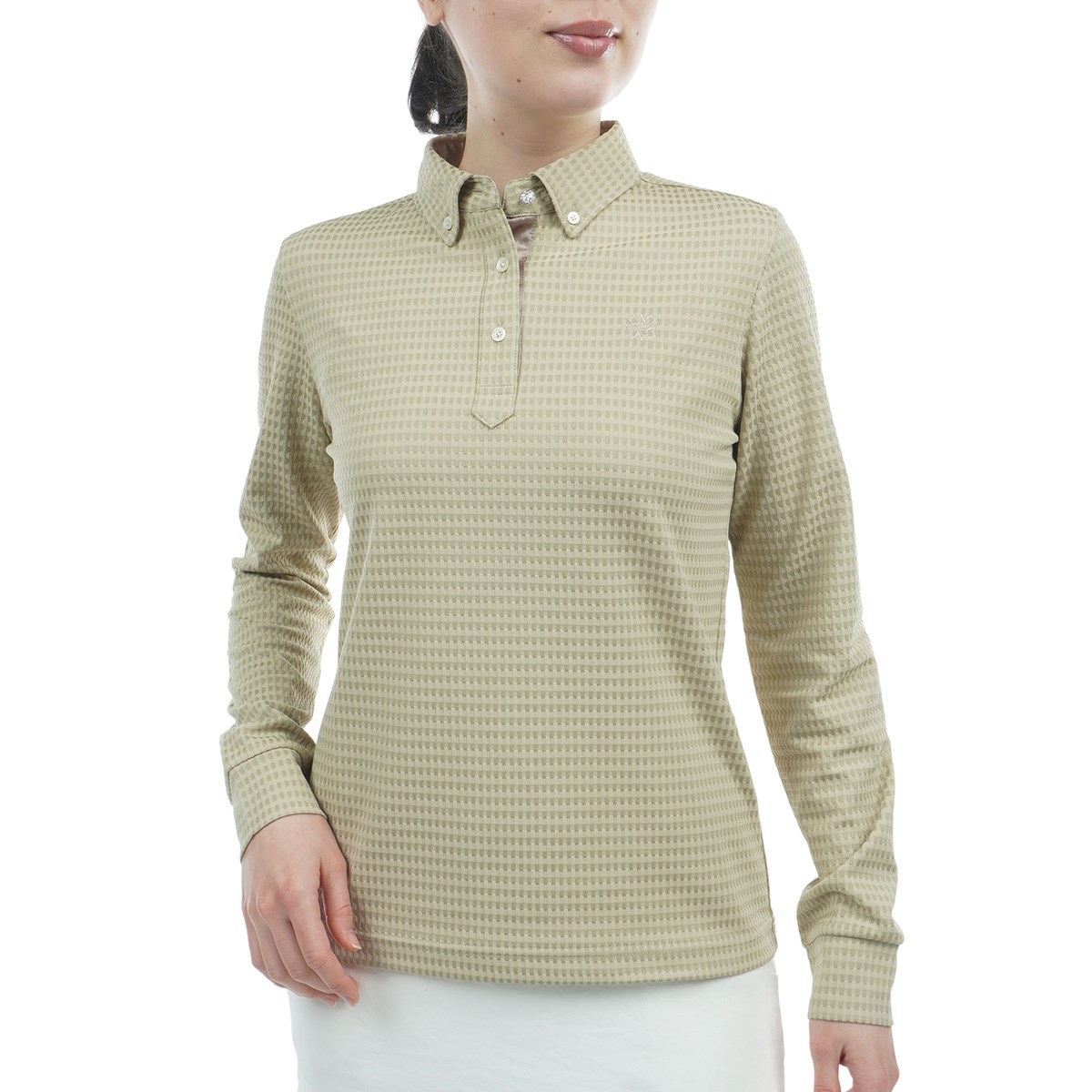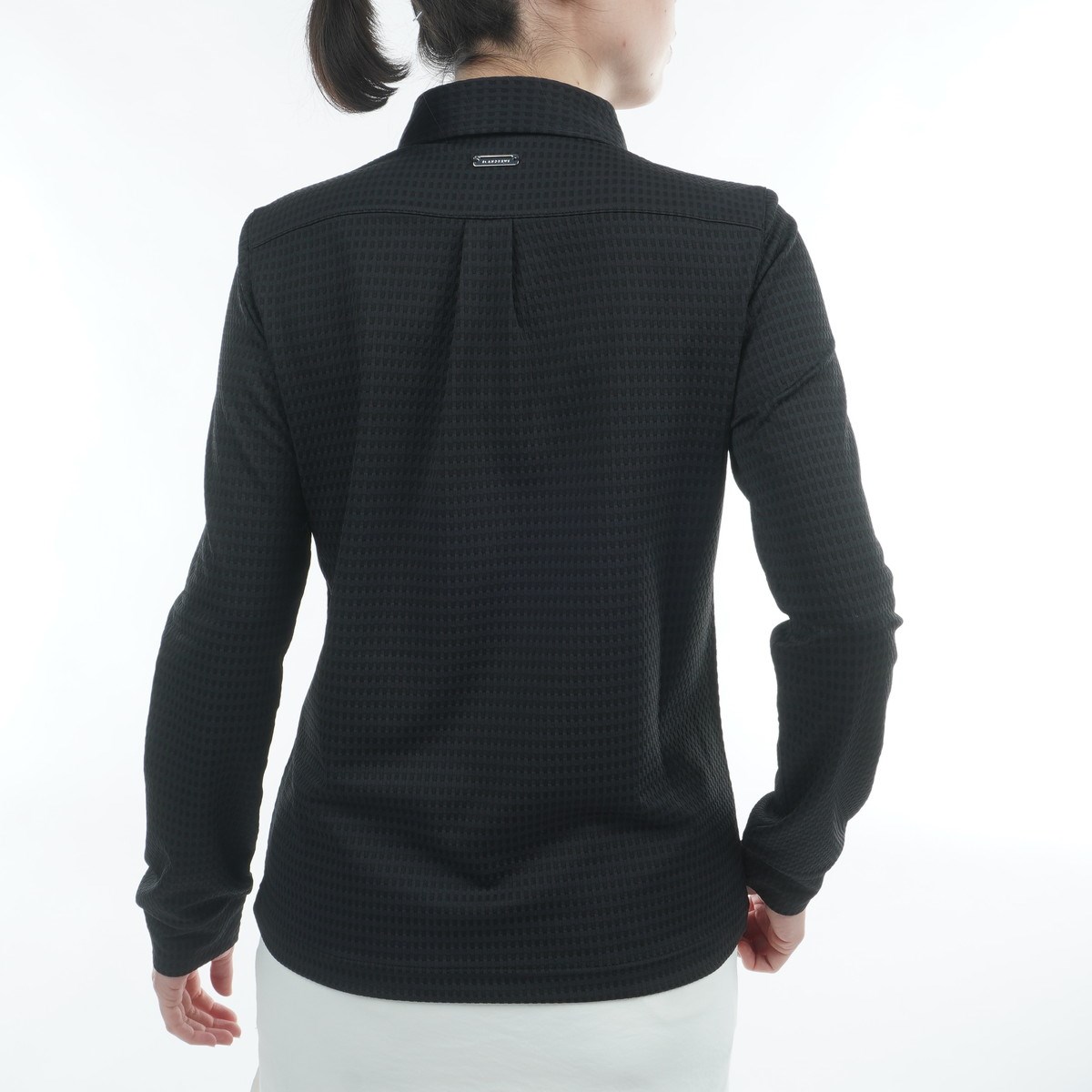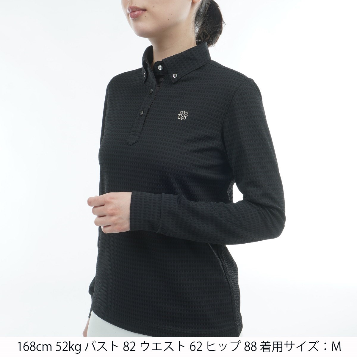 セント・アンドリュース St ANDREWS 格子ジャカード長袖ポロシャツ S ブラック 010 レディス