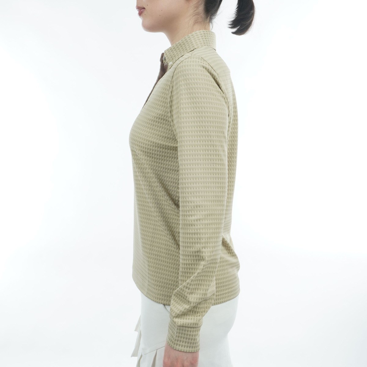 セント・アンドリュース St ANDREWS 格子ジャカード長袖ポロシャツ M ベージュ 040 レディス