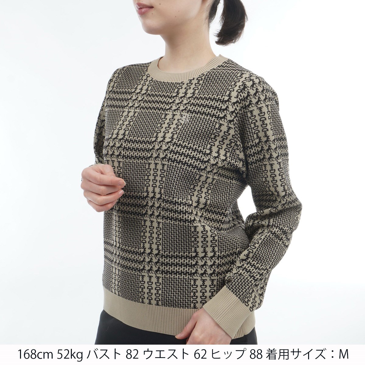 セント・アンドリュース St ANDREWS ホースビットチェックジャカードプルオーバーセーター M ホワイト 030 レディス